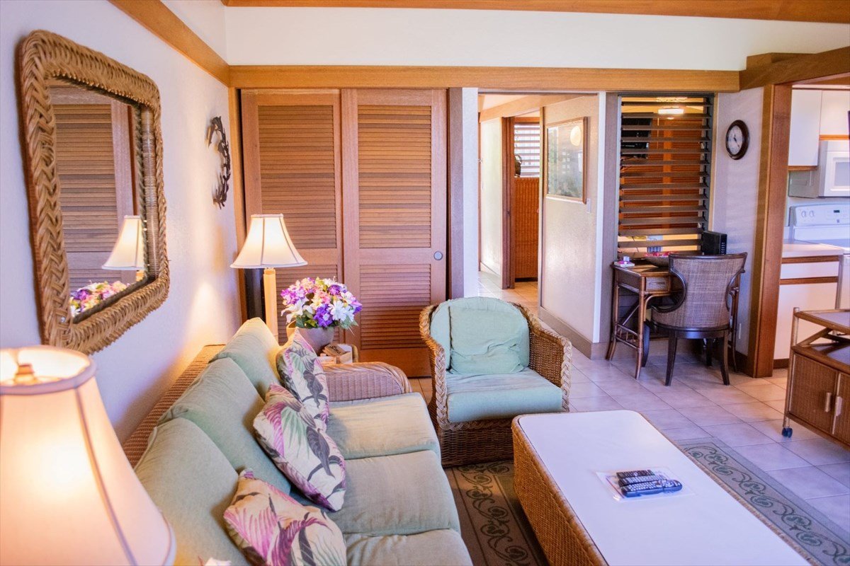This is a leasehold property. Incredible ground floor unit on the west end of Kiahuna Plantation! This fully furnished turn-key vacation rental boasted a 91% occupancy rate in 2019. Large private lanai overlooks the beautiful Moir Gardens. Bathroom was recently remodeled with granite countertops and full tiled shower. No road noise from this unit, great location near Plantation Gardens Restaurant. Walk to the best beaches on Kauai! Guests can enjoy full access to Poipu Beach Athletic Club: Resort-style pool & spa, fitness center, tennis courts.