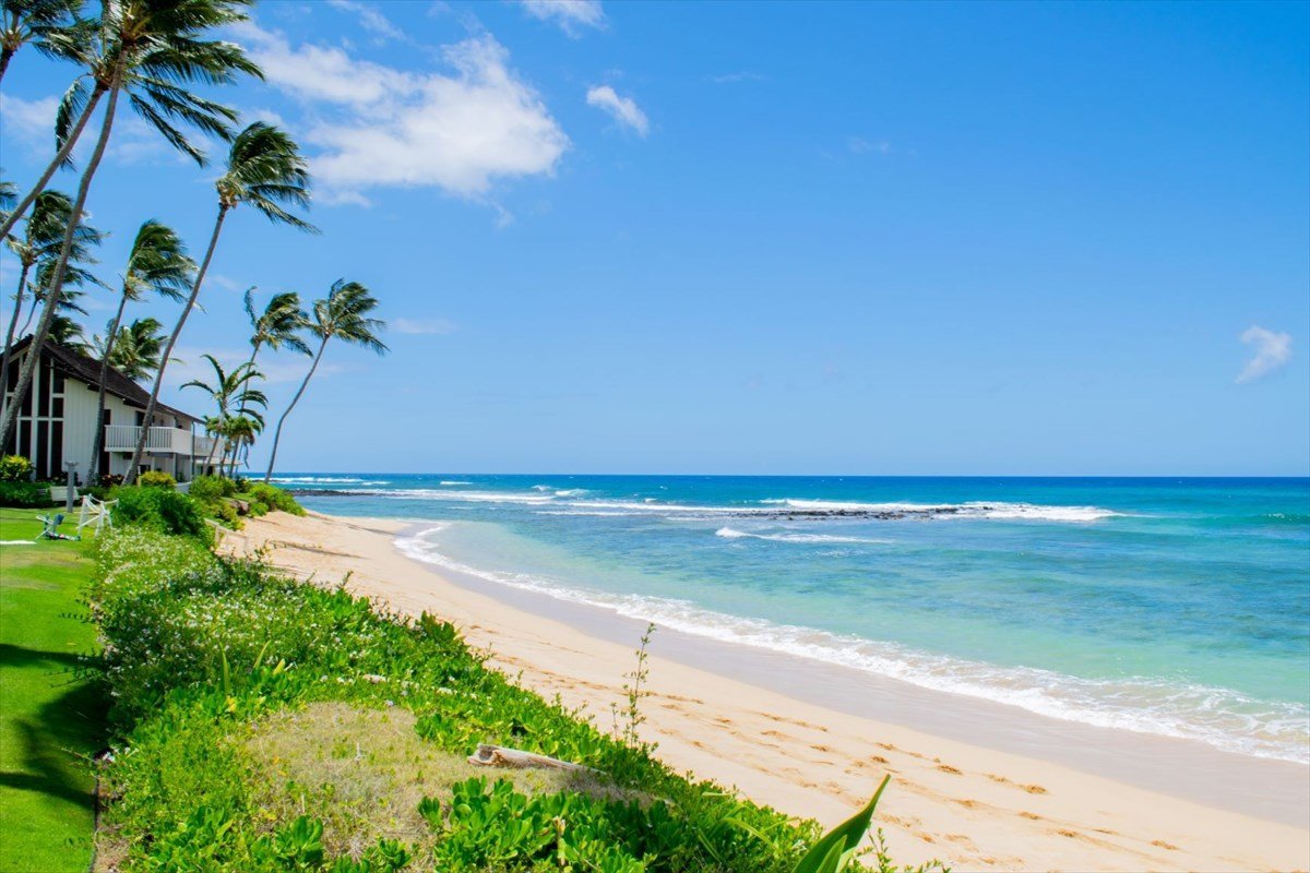Kiahuna Plantation fronts right onto Kiahuna Beach (considered part of greater ‘Poipu Beach’). A few residences are only about 10 yards from the water and you only have to hop the barrier behind them to be on the sand.