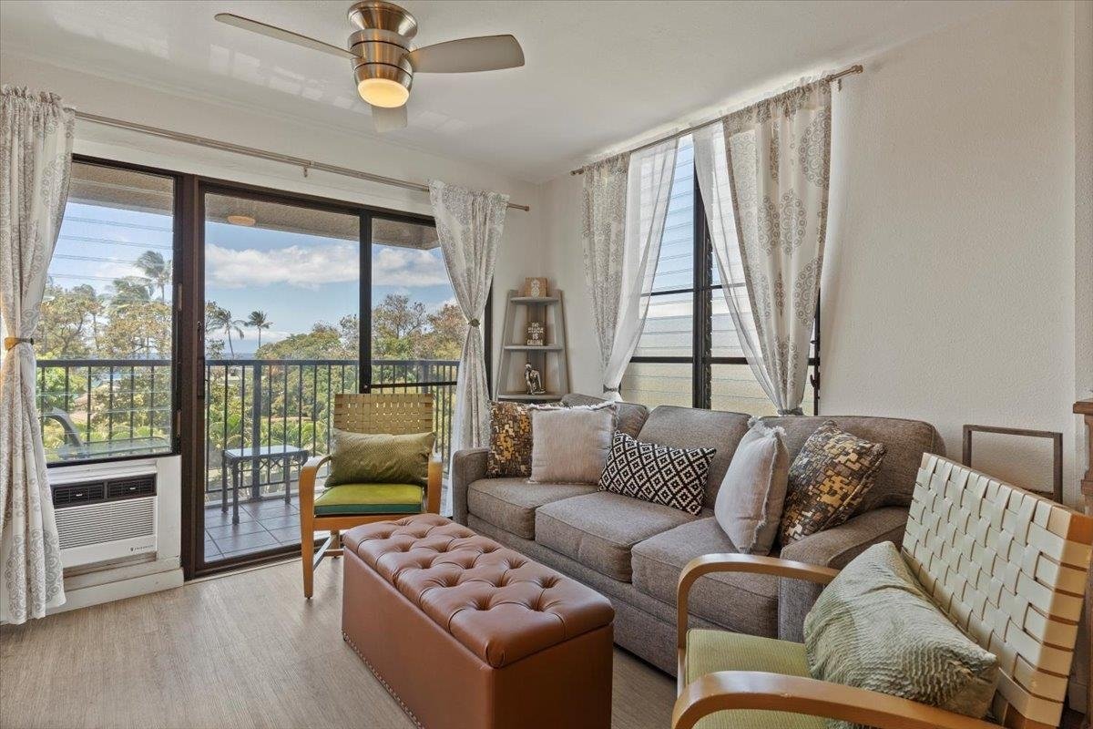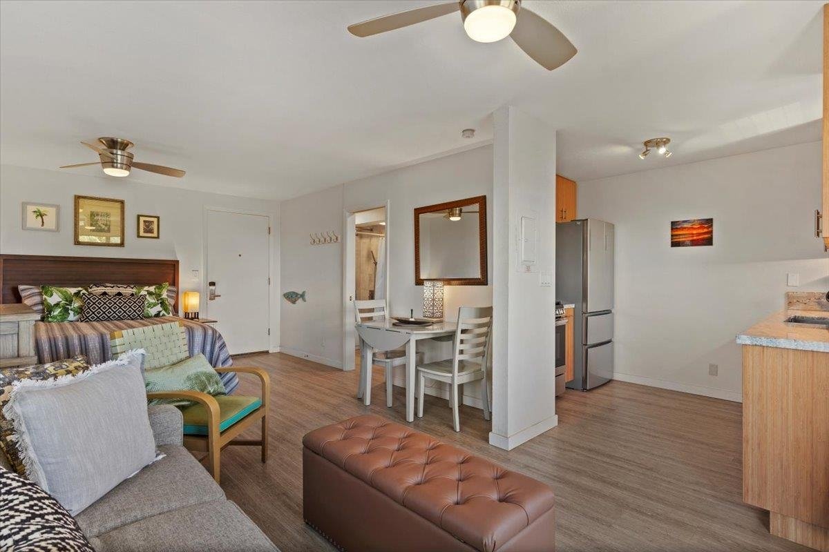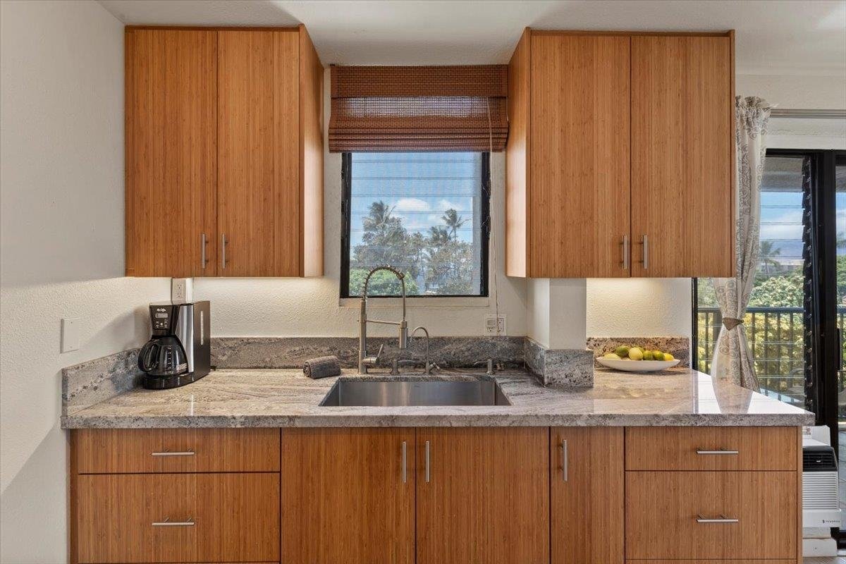 3rd Floor Studio with an OCEANVIEW! This RARE makai end remodeled unit is a gem! If you are looking for a vacation rentable unit in Kihei look no further. Complete kitchen and bath remodels. Gorgeous soft close bamboo cabinetry, modern faucets and fixtures, stylish and durable vinyl flooring, new countertops. Lockable Owner cabinets. Fully furnished and stocked ready to be a rental from day one. Kihei Akahi is perfectly positioned in the center of South Kihei directly across the street to Kamaole Beach II, one of Mauis' most popular beaches. Stroll next door to many of Kihei's top restaurants and shops. There is something for everyone with the eclectic beach town vibe of Kihei. You and your guests will enjoy fantastic sunset views year round plus watch the WHALES right from your lanai during season! The C building is between both pools and next to the private tennis and pickleball court! Yes, you have your own court here. This unit is on the makai end of the building with only one neighboring unit providing more privacy. This is an absolute must see unit for anyone looking for their personal slice of Maui paradise or vacation rental!