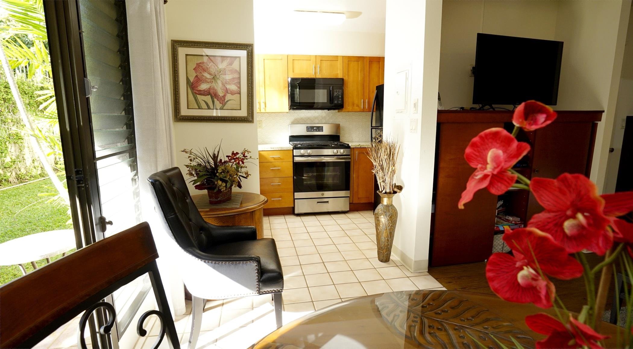 Your little piece of paradise is located at the popular Kihei Akahi resort, in D Building, which is at the back of the complex, away from the street noise, but just down the private driveway to Kamaole Beach #2. Located on the ground floor, when you enter your turnkey unit, you have everything you need to live or to rent long or short term. Your property has been tastefully upgraded with granite countertops, wood cabinets, a mix of tile and vinyl flooring as well as new appliances. Open the lanai door to to enjoy a grassy area that is very private, and located in a part of the complex that really feels like it's your own backyard. Kihei Akahi has 2 excellent pools, a tennis court, and numerous fruit trees. Management fees include cable and internet, gas (stove and dryer) and solar heated hot water as well. These amenities you can enjoy every month in your electricity bill savings.