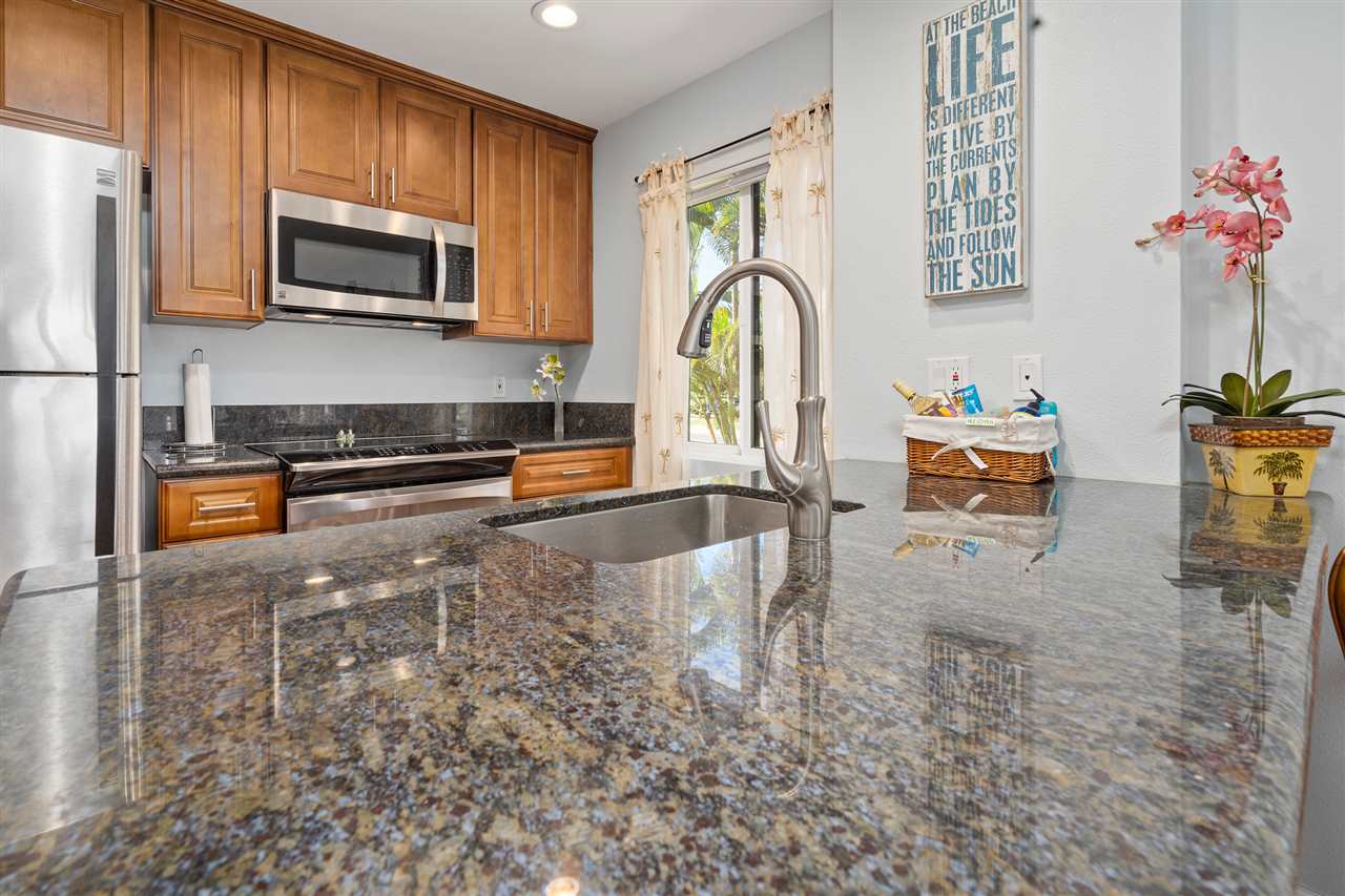 From the moment you walk in, you will be impressed with this beautiful end unit featuring ocean and West Maui Views! Relax on the lanai with your cup of coffee in the morning and enjoy the view of the ocean. This adorable condo has been completely remodeled and is nicely furnished and stocked. The kitchen has newer Cherry wood cabinets, newer stainless steel appliances and granite countertops plus a peninsula giving the unit a luxurious look and open feel. You'll love the tropical bathroom with its stunning tile work and shower. Owner has taken pride in all they have done with new double pane windows, travertime tiled Lani deck, newly installed laminate flooring, and a closet organizer and so much more! New washer/dryer to be installed before closing. Deeded parking stall. A superior unit in every way! A must see!