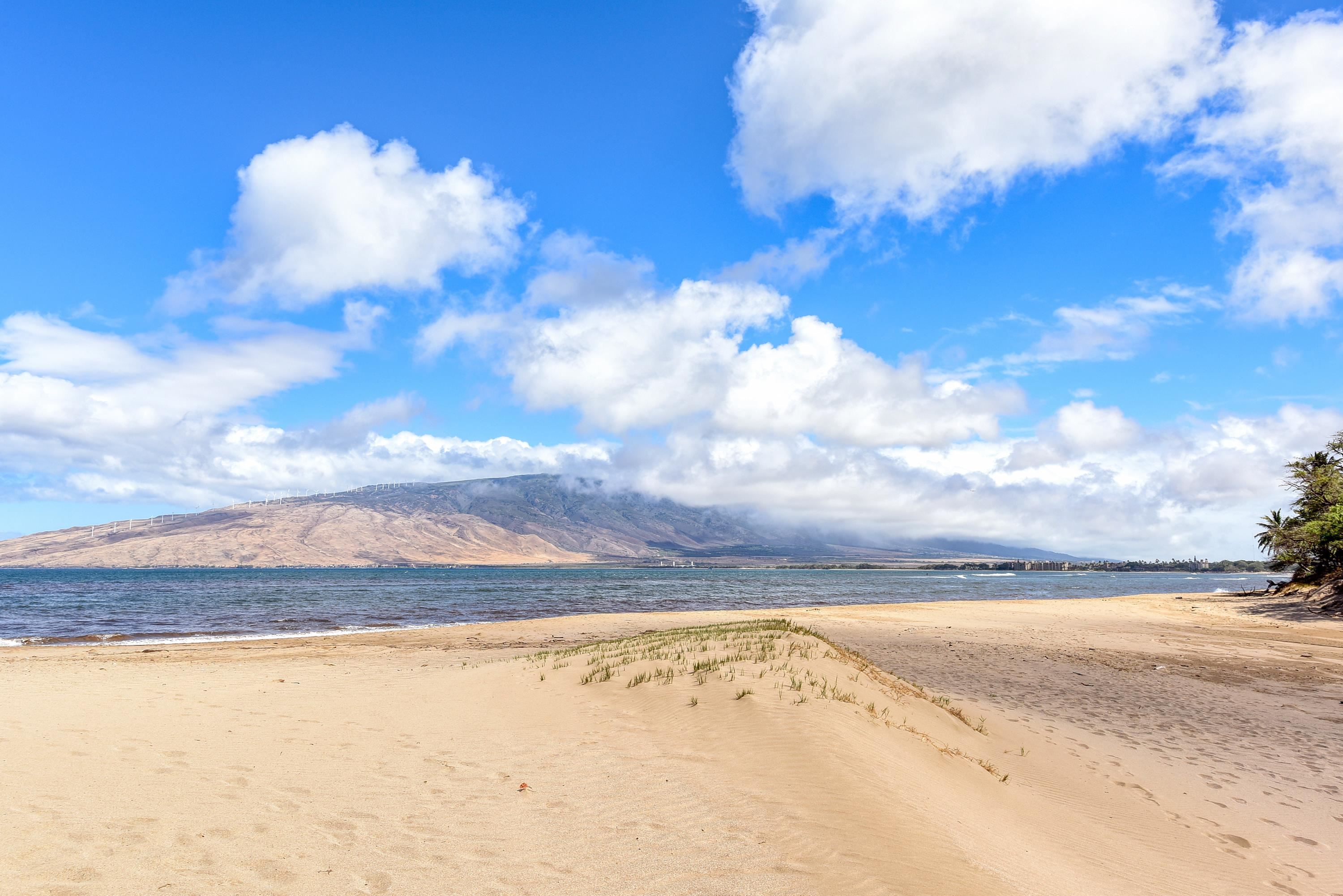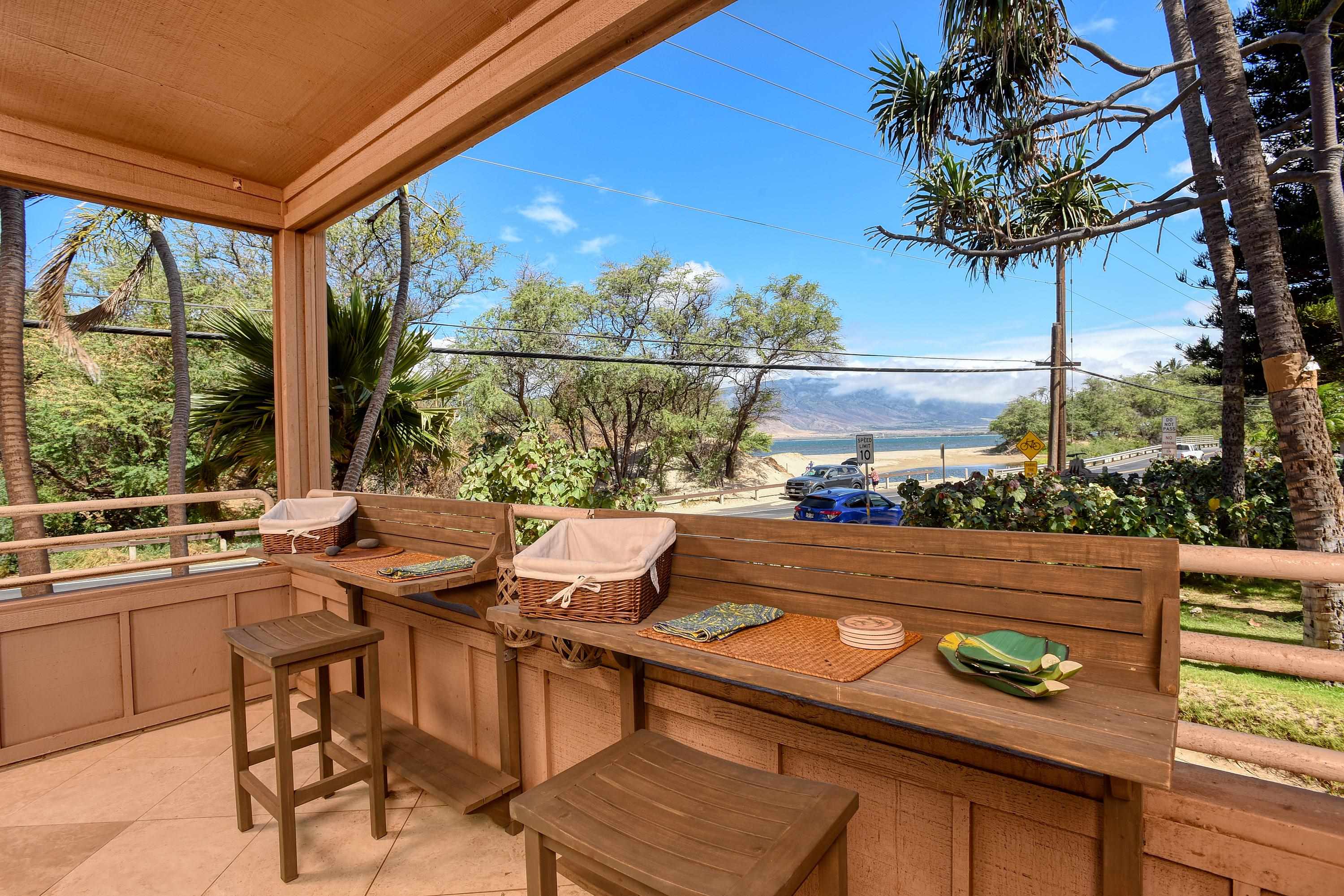 Well appointed ground floor beach condo. Big ocean and mountain views. Remodeled in 2021, new washer dryer, Cherry wood cabinets, newer stainless steel appliances, granite countertops plus, travertine tiled lanai, new laminate flooring and double pane windows. Beautiful tile work throughout the bathroom. Deeded parking stall. Across the street from Kalepolepo beach park. Being offered fully furnished.