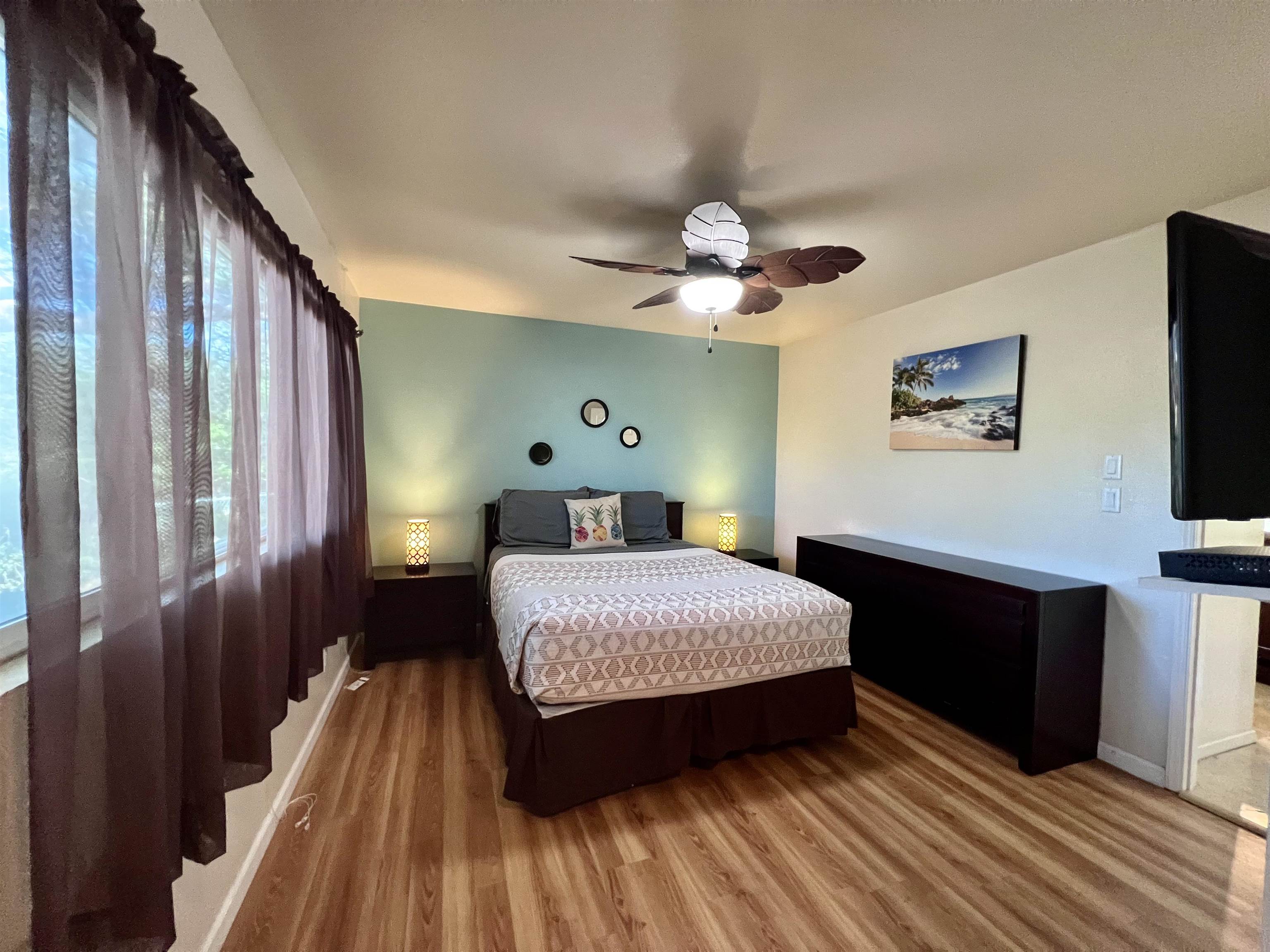 This cozy and functional 1 bedroom, 1 bath unit is located in the desirable "D" building that backs up to a green space. This condo has three steps to the first floor. It is a perfect Maui getaway with tile floors, sunny windows, and a large private lanai that greets you when you enter this homey space. Soak in the tranquil atmosphere from the comfort of your personal lanai. The grounds of this charming complex are lush and tropical. The complex boasts an outdoor pool, hot tub, a picnic pavilion and BBQs. Kihei Bay Vista is a boutique, low density complex located directly across the street from the beach and is within walking distance to the Whale Sanctuary and Kalepolepo park. The property is currently in an active vacation rental program.