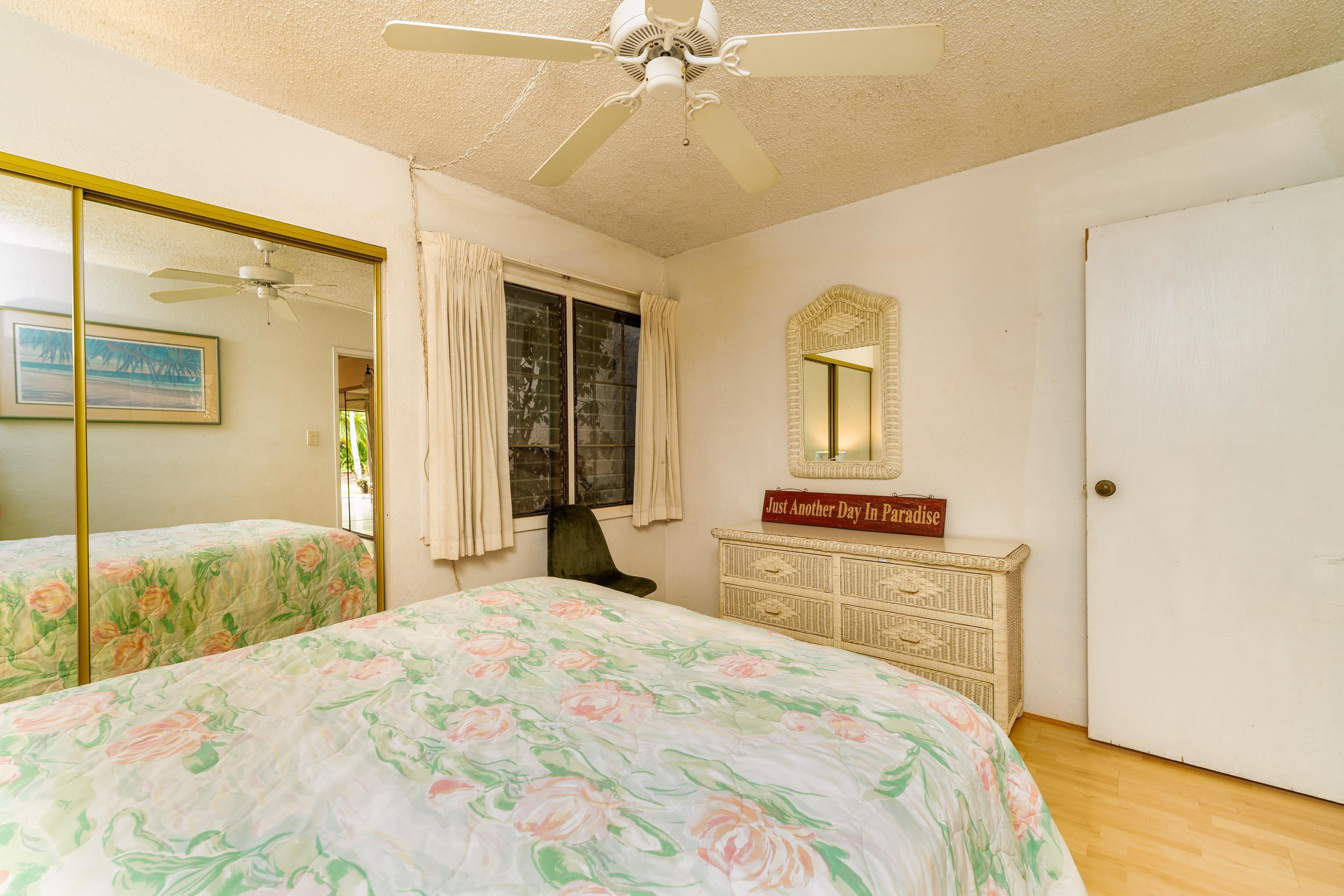 Kihei Garden Estates, ground floor, vacation rentable, 1 bedroom/1 bath, close to beach with garden view. This complex is just a block from Waipuilani Beach which is one of Kihei’s many south facing beaching with amazing sunset views. The vacation rentable unit comes furnished and is ready to rent. It has been used a vacation home for the owners and was not vacation rented. The condo was upgraded in 2012 with laminate floors and granite counters. Kihei Garden Estates is centrally located in Kihei and is close to the beach, shopping, coffee shops, and supermarkets. The complex boasts lush, tropical grounds with a BBQ pavilion and outdoor kitchen, heated pool, and large hot tub. For your guests’ convenience, there are laundry facilities available.