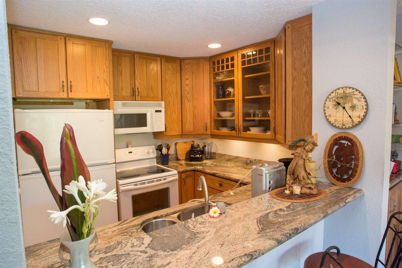 You will love this condo for many reasons; the remodel is complete with high end quality finishes, and there are mature trees and lush tropical greenery that surround this ground floor unit. Kihei Gardens Estates is located across the street from a white sandy beach at the ocean. Centrally located in Kihei by a whole variety of stores and eateries, workout gyms, post office and more... Enjoy some time at the pool or Jacuzzi. A nicely covered lanai with a kitchen and entertaining space is a bonus to your outdoor living in the fenced pool area. Inside condo the kitchen has been redesigned with new cabinets that provide more storage and is topped off with designer granite counter tops. The bathroom has a walk in shower with finishes you see in Wailea luxury condos. The bedroom has dual pane windows with a newer AC unit. Looking for more storage? You'll find more storage space behind the newer mirrored double doors in the hallway with ample shelving inside. Many guests love to return to this complex year after year because of all the great friendships they have created here.This condo complex does allow vacation rentals, but this unit was owner occupied for years. Currently there is a month to month tenant living in the condo and it can be shown with some advance notice. Call to arrange your preview with your favorite Realtor.