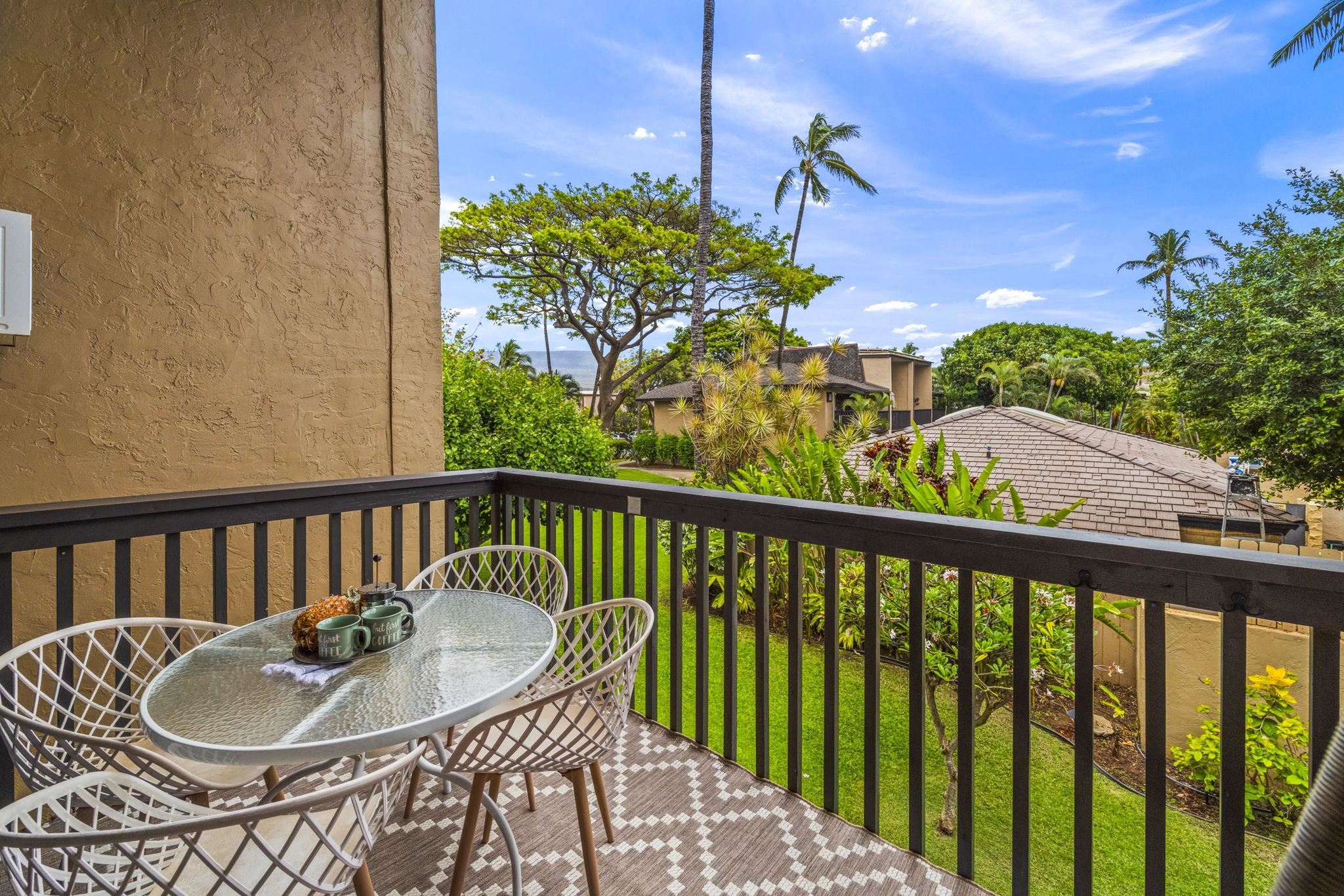 Welcome to beautiful Kihei Garden Estates where lush surroundings bring peace and tranquility to your light and airy two bedroom condo. Sky high ceilings and floor to ceiling windows grace your living room inviting plentiful natural light in. Even still, one can’t help but be drawn outdoors to your spacious lanai, which opens to a green courtyard full of tropical foliage - precisely what you dream about when you think of Hawaii. Lipoa St Beach, directly across the street from Kihei Garden Estates, connects all the way up to Sugar Beach, the longest contiguous beach on Maui. For you avid hikers and daily walkers, this beach is perfect for you. Lipoa St Beach is also the perfect spot to launch your stand up paddleboard or kayak. Having the ocean in your back yard provides endless possibilities for enjoyment, not to mention incredible nightly sunset views. Kihei Garden Estates is centrally located in Kihei on the Makai side of South Kihei Road. Conveniently and directly next to your complex is Times supermarket and the Azeka shopping mall with tons of restaurant and store choices. Mauka of Azeka is a food truck park with even more eating options just a short distance from your condo. Then, on the 4th Friday of every month, there is a block party (known as Fourth Friday) where tons of vendors with various products and food options give you the opportunity to partake in the close-knit Kihei community right around the corner from your condo. Unit G204 has been updated over the years with newer luxury vinyl flooring on the first floor. Both bathrooms have been renovated and newer, stylish furniture complete the space creating an experience your guests will plan to return to year after year. G204 is located behind the community area in the courtyard shielding you from some of the pool noise but still close enough so you can take a quick dip or watch the stars at night from the hot tub. G204 is sold fully furnished. The shared laundry room is right next door along with ample parking for you and your guests. Additional surf board storage is on site as well. Kihei Garden Estates has an owned Photovoltaic system to help pay for the common area items: pool, laundry, exterior lights, etc. This helps keep your HOA costs down by harnessing the power of the sun! Kihei Garden Estates is an incredible complex with strong Hawaiiana vibes. Once you stay here, it is hard to ever want to stay anywhere else. The spacious upgraded unit, amazing amenities, and proximity to the beac