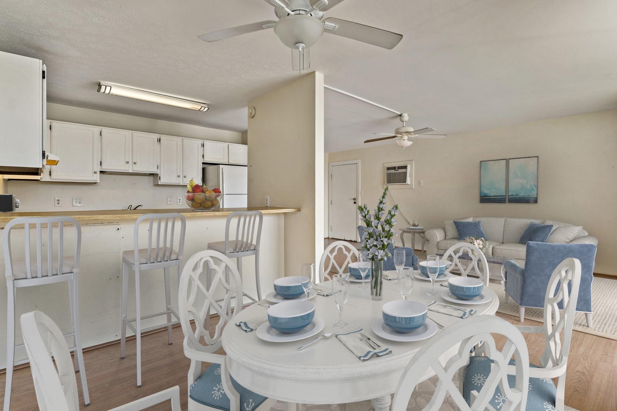 Arguably the best value on market for a 2 bed Kihei condotel unit across the beach! Come preview this spacious 2 bed/1 bath ground floor unit which is located just steps away from the complex pool, and right across the street from the beautiful Sugar Beach. This unit has been well loved, and is now priced rock bottom low to reflect that. It is being sold in As-Is condition for you to transform it as you desire! This property is short term rental approved, pet-friendly, has a swimming pool, hot tub, and bbq area, and is in close proximity to restaurants, white sand beaches, convenience stores and more! Comes with 1 assigned parking stall, however beach/street parking may be available on a first come basis. Kihei Holiday is a beachy, short-term rental approved, boutique 48-unit condo complex situated on approx 2 acres, right across the street from Sugar Beach. Easy to show! Book a showing quickly before it's gone! The staging items such as furniture, artwork, plants and the like portrayed in these photos and/or videos have been created by computer generated image technology and used for illustration purposes only. No real, actual or physical staging items are included in this sale. Unit is equipped with AC, pergo floors, and includes all kitchen appliances as well as a full size in-unit washer/dryer. Hotel zoned, can live in or vacation rental. Maintenance Fees include: water, sewer, trash, grounds/landscaping, pool and bbq maint., wifi for the pool area only, and basic in-unit cable tv. NOT included are: Electric (Maui Electric Co; each unit individually metered and paid by owner), upgraded cable, in-unit internet. See virtual tour for floor plan and dimensions: https://my.matterport.com/show/?m=A2aAGhD3KNS&brand=0&mls=1&