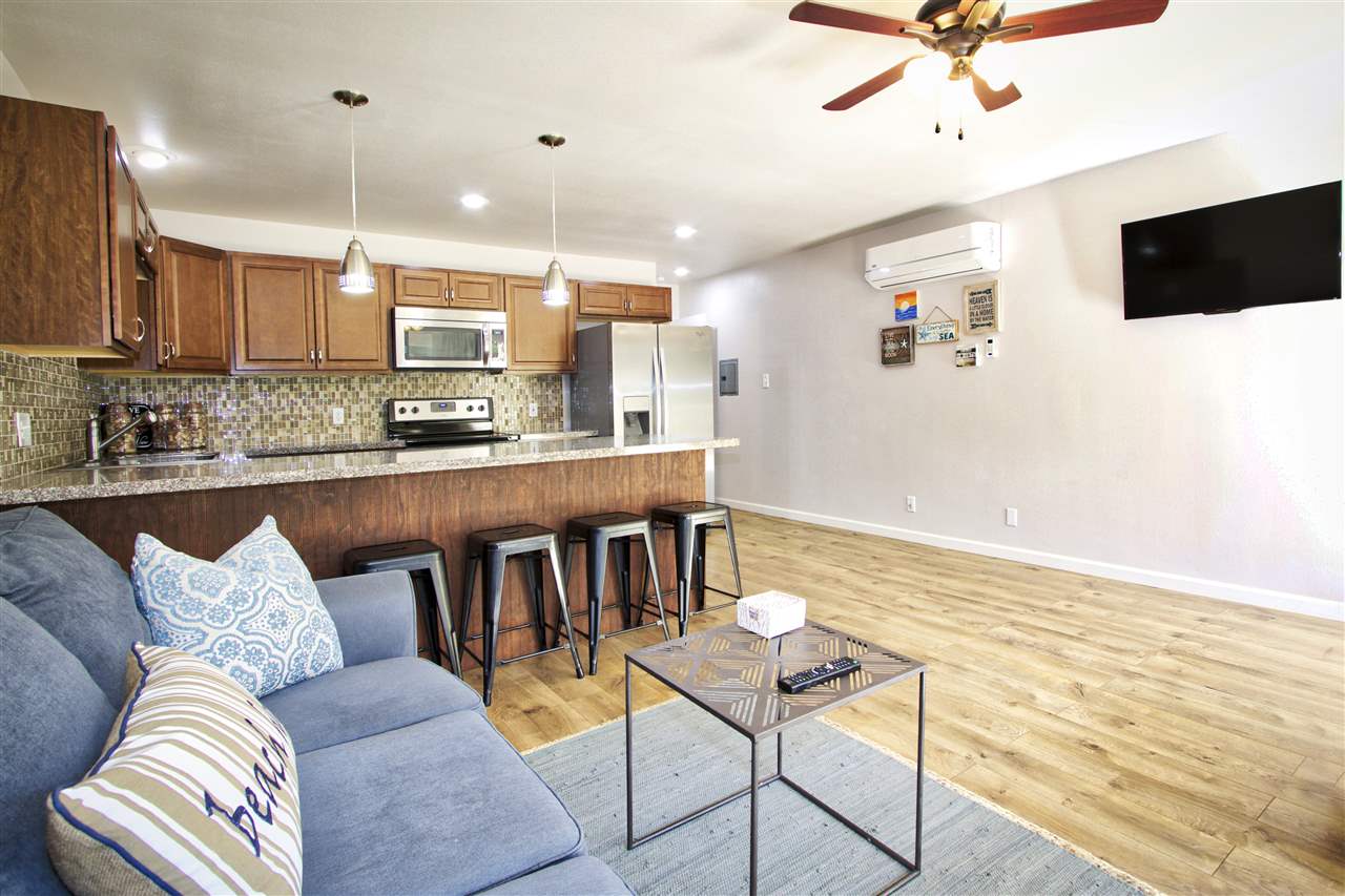 BEACHFRONT CONDO COMPLEX! Kihei Kai is one-of-kind, with its rare glimpse back to "old Hawaii" feel before the construction of concrete tower buildings and mega-resorts. Kihei Kai #3 is a gem and with its spacious lanai (Patio) is just steps away from miles of sugary sandy beach. Right as you step inside you notice the open modern appeal. OCEAN view is from Lanai. Unit 3 has been beautifully updated. The Maui Beach Life awaits you in this wonderful intimate boutique beach side residence. BBQ and/or dine al fresco on the grassy lawn fronting the beach. Lay back and catch up on your favorite author. Watch the whales in season and hear the lull of the waves as you unwind and enjoy life under the Maui sun. Of course, you don't want to miss the spectacular Maui sunsets! Sugar Beach is miles of sandy coastline, perfect for swimming, stand up paddling, snorkeling, kayaking or outrigger canoe. The perfect beach for morning/sunset walks. Kihei Kai #3 is a fee simple condo. It can be rented out as a vacation or long term rental for additional income. You can also use it as an owner occupant or your vacation home retreat. THIS IS YOUR OPPORTUNITY TO HAVE THE MAUI BEACH LIFE EXPERIENCE. THIS IS A GEM! ONE OF THE BEST BEACHFRONT VALUES TODAY! CALL YOUR REALTOR TODAY!