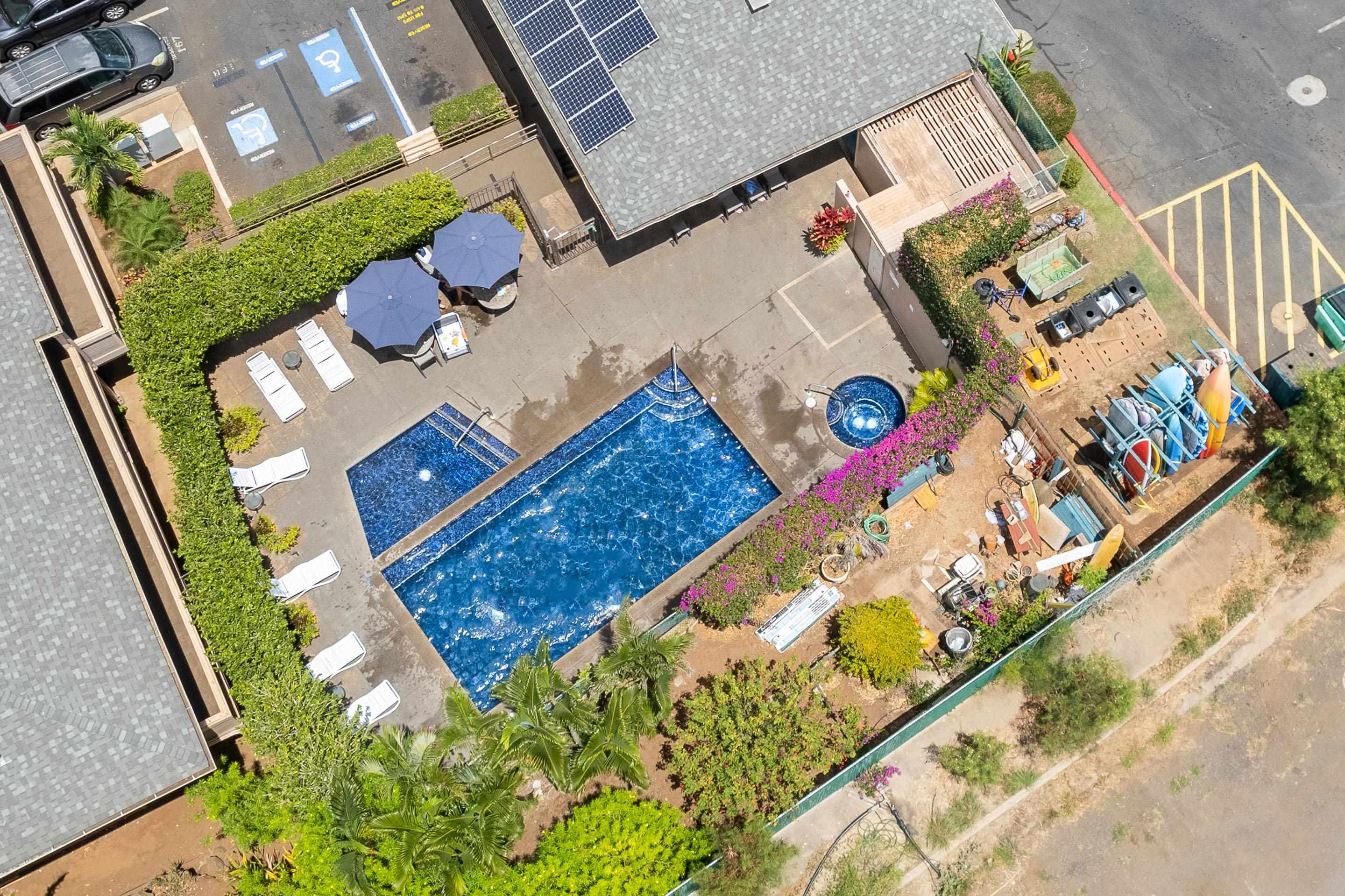 Kihei Shores is a well-maintained condominium complex with a quiet atmosphere. The complex is located about 1/4 mile away from Kamaole Beach Park III, a popular sandy beach for snorkeling, swimming and relaxing, yet tucked behind neighboring buildings, away from street noise.