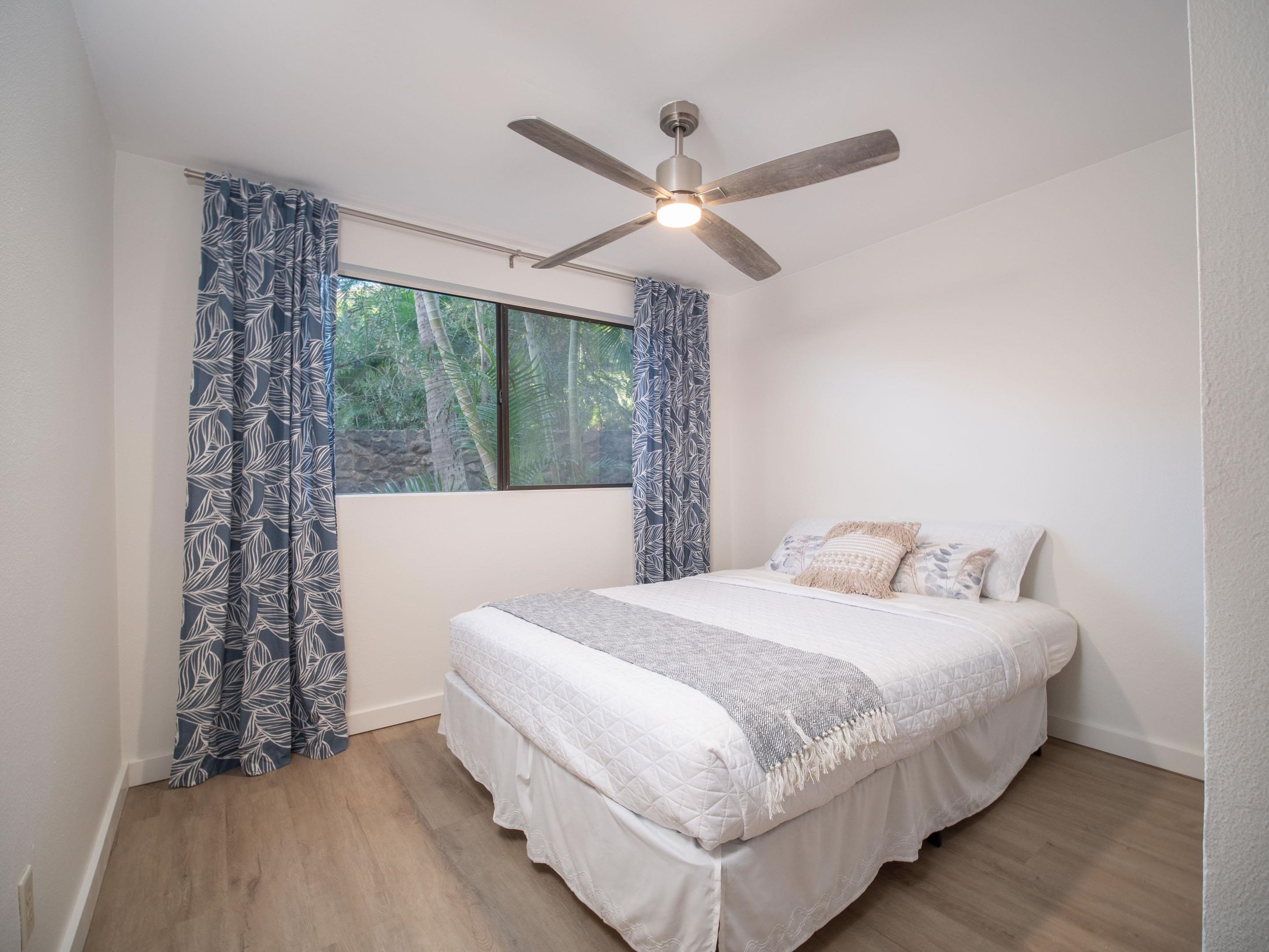 This newly renovated downstairs unit at Kihei Shores is private, cool, and quiet. Located at the west corner of the C building nearest to the entrance of the complex, this unit boasts a beautiful garden atmosphere and direct access to the green belt from the ground floor lanai. Noteworthy upgrades include brand new stainless steel appliances (2022), brand new baseboards and Luxury Vinyl Plank flooring throughout (2022), new washer and dryer, living room A/C unit, and smooth (no popcorn) ceiling! Kihei Shores is located directly across the street from Kamaole Beach Park III and walking distance to every convenience in the neighborhood. Take a short drive to Wailea and Makena and enjoy exceptional dining, golf, 5-Star resorts, and more. In addition to the in-ground pool and jacuzzi, Kihei Shores on-site amenities also include kayak and paddleboard storage, barbecue area, and car washing station. This is a fantastic opportunity for first-time homebuyers or investors looking to rent on a six-month or longer basis. What are you waiting for? Call for a private tour today!