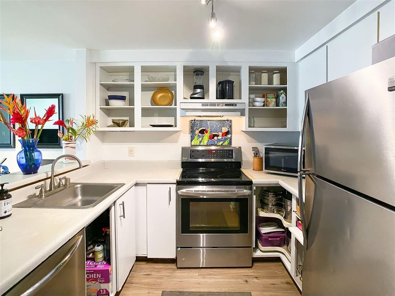 Check out one of the lowest priced 2 bedroom, 2 bath condos located in desirable Kihei Shores in South Maui ! H-008 is on the ground level with cooler temps and has a walk out lanai accessing a greenway. Kihei Shores is an easy walk to the white beaches and grassy hill of Kam III, Kamalii Elementary, dining, shopping and the Kihei Boat Ramp. Enjoy the complex amenities: pool, hot tub, picnic tables, car washing area and barbecue areas. This well kept condo has updated bathrooms, stainless refrigerator, dishwasher & stove, full size washer & dryer, recessed lighting and new laminate flooring throughout. There is one assigned parking spot in front of the H building and one unassigned spot. This complex has one of the lowest HOA maintenance fees on Maui and also offers extra sup/kayak storage.