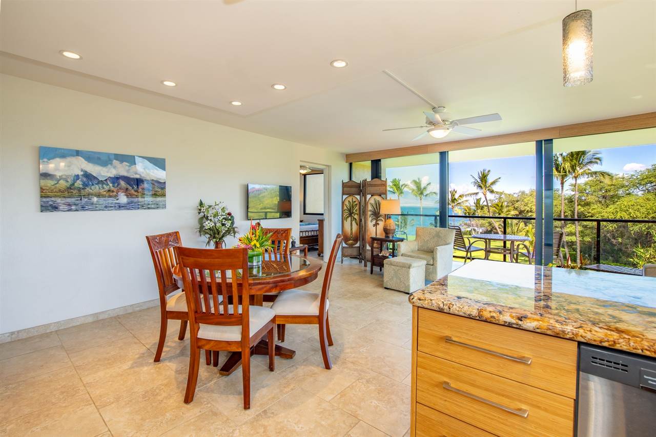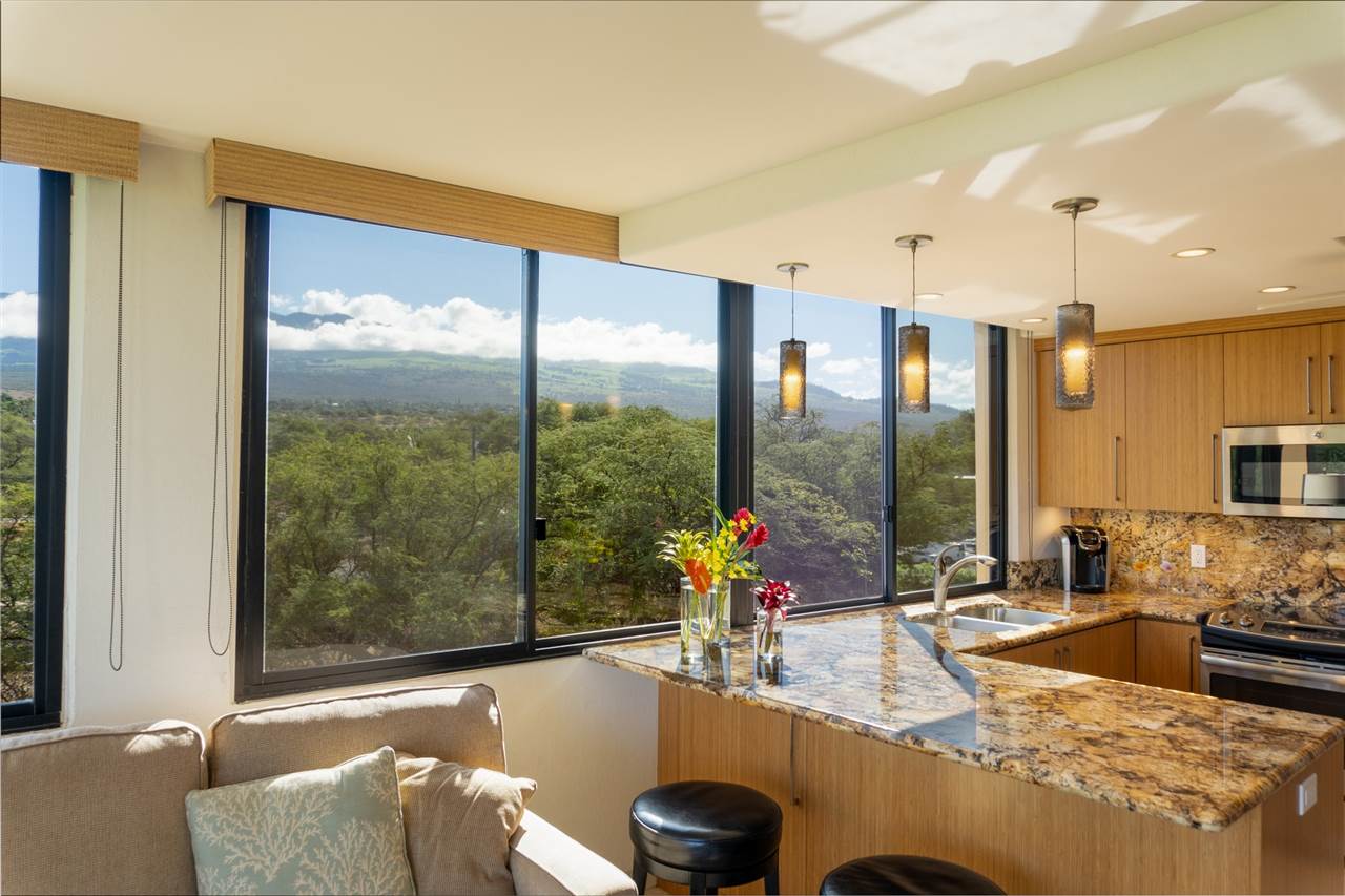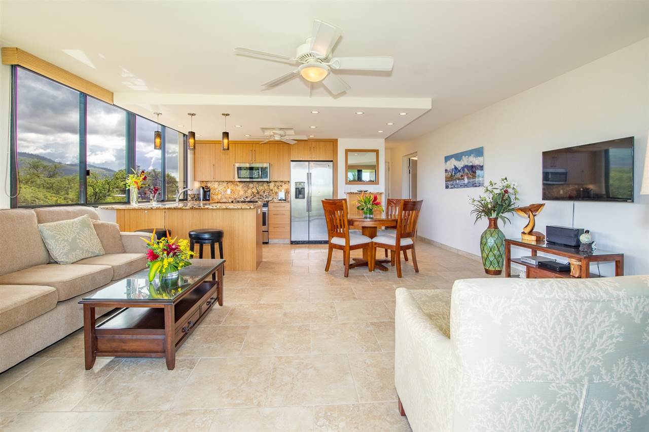 Introducing one of the most rare oceanfront offerings in South Maui: Kihei Surfside 414. Featuring outstanding ocean and mountain view corridors, the 2 bedroom corner unit enjoys an open floor plan anchored by serene views of Pacific and meticulously landscaped surrounding. With wrap-around windows, the space feels open and inviting, yet with a 4th floor elevation, the privacy is unmatched. The total remodel includes bamboo cabinets, stainless steel appliances, modern granite, and is tastefully furnished to offer the comforts of a home with the luxury touches of a resort. As the first two-bedroom unit to be offered at Kihei Surfside in 5 years and priced attractively, this unit will not last. Contact your favorite Maui Realtor for more details.