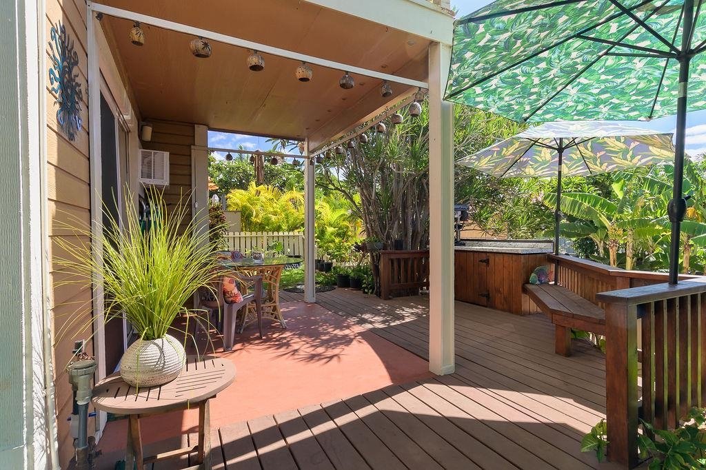 Discover your serene tropical island retreat at 140 Uwapo Road, Unit 11-102, Kihei, HI! This charming ground floor 2-bedroom, 1.5-bathroom condo offers 750 square feet of comfortable living space in the coveted Kihei Villages. Nestled in arguably the best private location within the complex, enjoy the calming tropical landscaping with a large private fenced backyard. If indoor outdoor living and privacy is your goal this is it! The condo features a welcoming interior with granite kitchen counters, tile floors, and a washer/dryer in-unit. With parking included and pet-friendly policies, convenience is at your doorstep. This unit is sheltered from direct sun and enjoys perfect cooling breezes - owners never need to use air conditioning!.This partially furnished gem is perfect for those seeking tranquility and a touch of island elegance. Don't miss out on this opportunity to embrace the Kihei lifestyle—schedule your private viewing today!