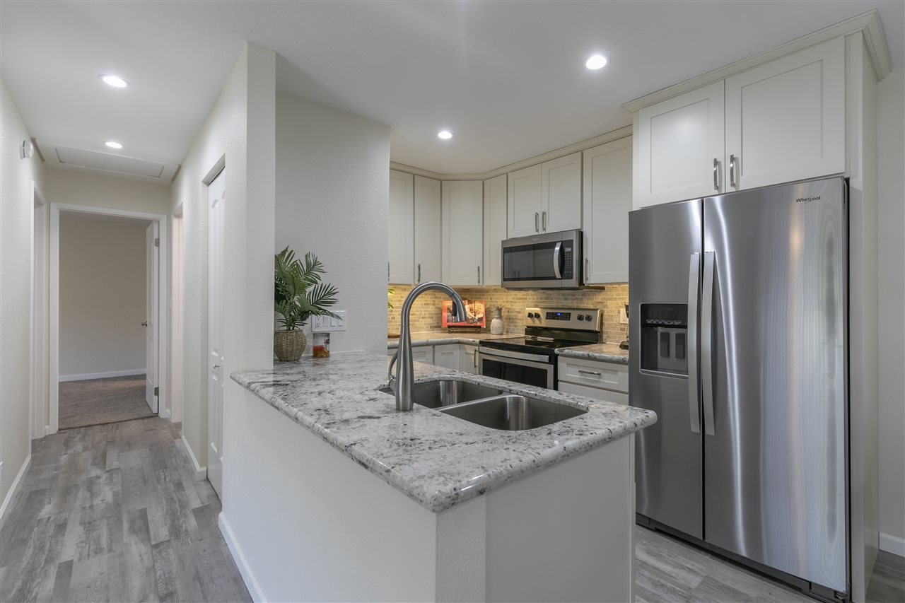 Model Perfect 2-bedroom 2-bath stunner has been jam-packed with custom touches throughout! Boasting a new kitchen featuring antique white shaker cabinets, granite counter tops and tile backsplash, Under cabinet lighting, stainless steel appliance with a counter depth refrigerator. Innovated wide plank vinyl wood flooring, new carpets and updated baths with a master bedroom and bath you’ll love! Seller is licensed Broker and listing agent