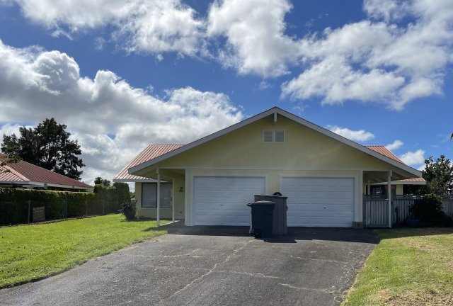 Comfortable and stylish living. Seller inclosed den (creating a 3rd bedroom). Upgraded closet systems in two of three bedrooms. Updated bathrooms. Nice large kitchen sink with smart faucet. Garage space enclosed as an alternate room/storage area. Can be changed back into a garage. Laundry area closet spaces/cubby systems make functioning sense. Beautiful hard wood bar counter in kitchen. Stainless refrigerator and stainless dishwasher. Laminate flooring, ceiling fans and vaulted ceiling in living room give a spacious feeling. This home has a lot and is conveniently located in the center of Kamuela town. Seller installed a central dehumidification system and insulation. A value investment in a healthy living space. Solar system has a lease to be assumed by the buyer. Solar installed 5/15/2019 monthly pmt. $114.74 (Balance due $4881.10 as of Dec 5th 2024). Home exterior newly painted ! Take advantage of this great opportunity to purchase a home in Waimea under 600k with 3/2 baths and a well kept yard in a very good location. The information herein may contain inaccuracies and is provided without warranty or guaranty of any kind. Agents and Buyers must independently verify any information they deem material or important to their purchase or any offered price there under. Square footage should be confirmed by an appraisal report.