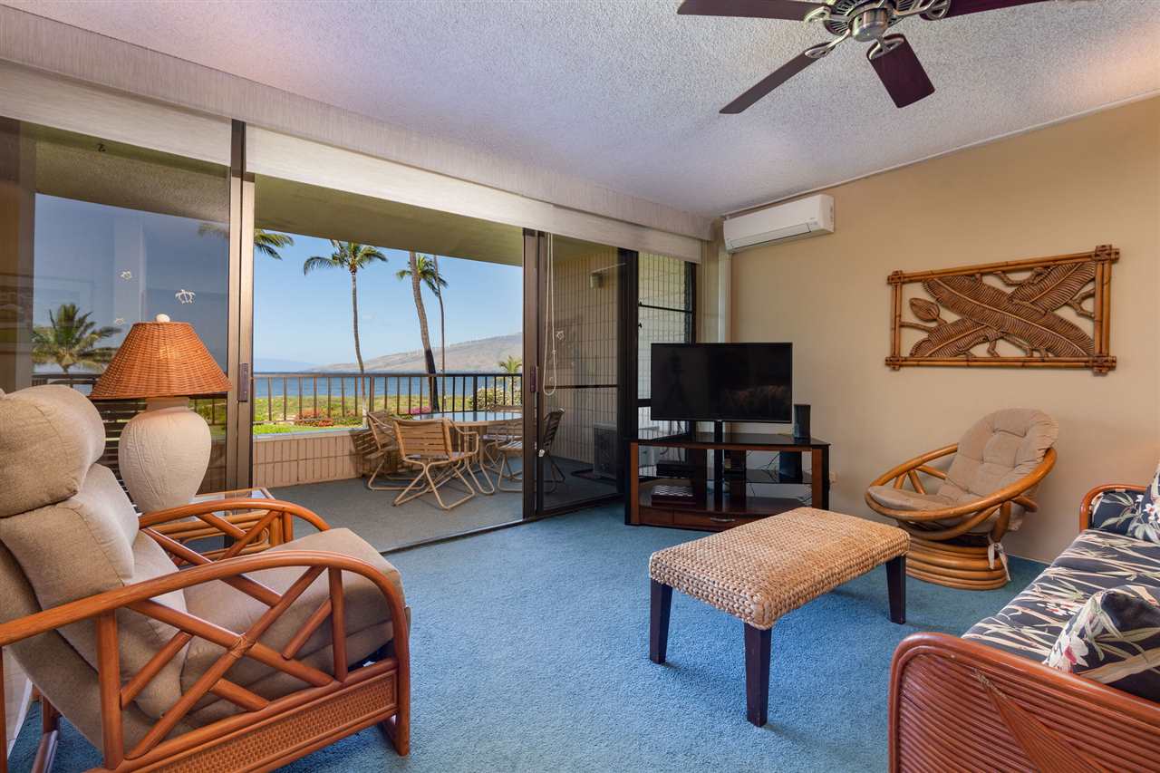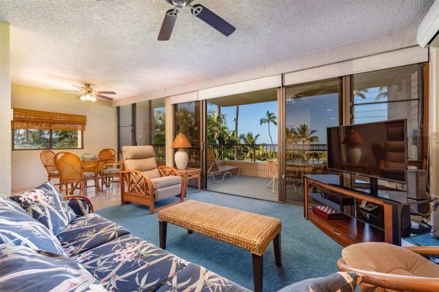 Expansive direct ocean & mountain views from the south side corner unit of Koa Lagoon. 2 bedroom 2 bath upgraded and popular vacation rental. 3 A/C split units, full washer/dryer and all the amenities. Enjoy the sandy beach and views of whales and turtles from you large lanai, living room, kitchen and dining area. Available to show 3/18pm & 3/19pm ONLY until after April 29 - contact your favorite agent today this one will not last!