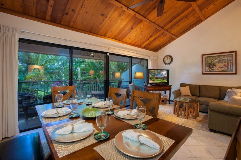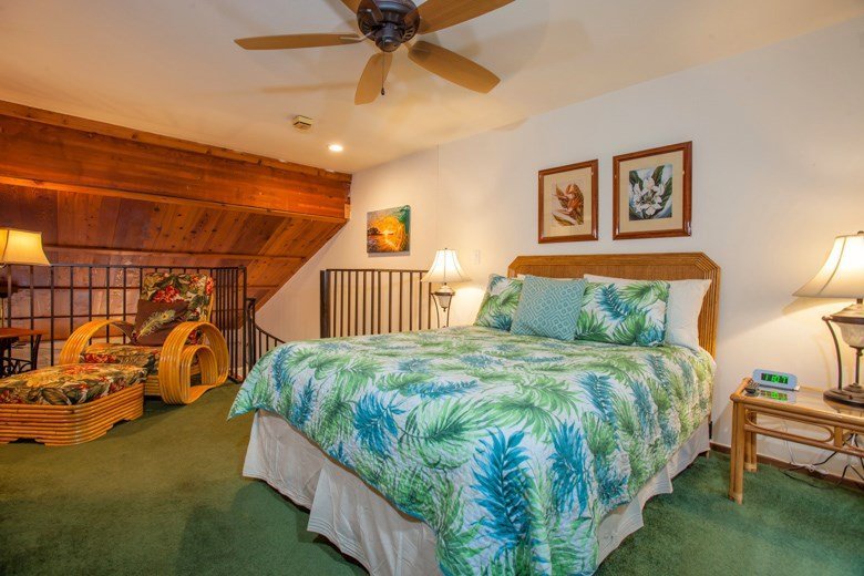 A great investment opportunity with this fully furnished, 3 bedroom, 2 bathroom unit in Kihei’s popular Koa Resort. Walk upstairs and enter into a well laid-out unit featuring a twin bed set in 1 bedroom and a queen bed in the other which both share a spacious bathroom with a walk-in shower and double sinks. The open design kitchen, dining and living area feature a slider that opens to a full 20’ x 8’ lanai with a beautiful garden view. This well-stocked kitchen has everything you could want for dinner for eight to sunset pupu’s & cocktails. The master suite is accessed by a spiral staircase and has brand new carpet and extra storage space. The en-suite bathroom features a bath tub and shower combo. Guests can cool off with the efficient Fujitsu AC units, or open the slider to enjoy balmy tropical breezes. Newer furniture and superior mattresses are complimented with touches of Hawaiian art throughout the unit to create a comfortable and memorable vacation experience. The property has a spacious pool, Jacuzzi, sauna, tennis courts, shuffleboard, outdoor party pavilion with gas grills, ample parking, and is lushly landscaped with tropical trees and flowers. Private and quiet, yet conveniently located to beautiful beaches, shopping and restaurants.