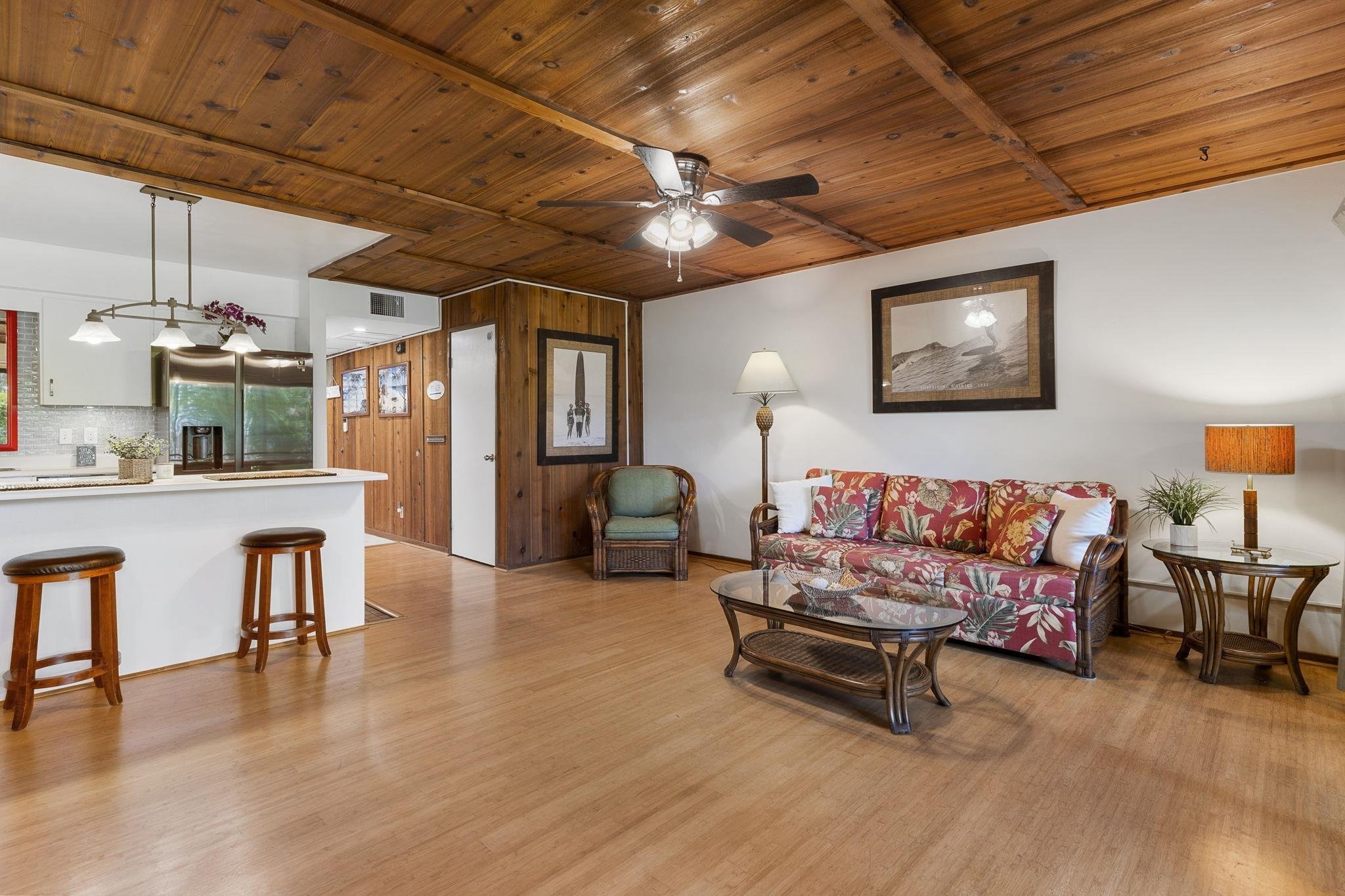 Welcome to Koa Resort 3D, located across the street from the beautiful beaches of South Maui. This is a spacious 1 bedroom 1 bathroom vacation rental condo on the ground floor with central AC that features a remodeled bathroom and updated kitchen. The electrical panel was completely updated in 2021 as well. Enjoy the fresh air and breeze from the large lanai off of the living area that looks out to the well maintained and lush common areas and is close to the pool. Koa Resort is a low density complex with only 54 units on 5.6 acres with amenities including: Huge heated swimming pool with arched walking bridge through the middle, hot tub, tennis courts, putting green, garden barbecues, shuffleboard and recreation center. Koa Resort is located across the street from the ocean and offers the option of vacation renting or long term luxury living.