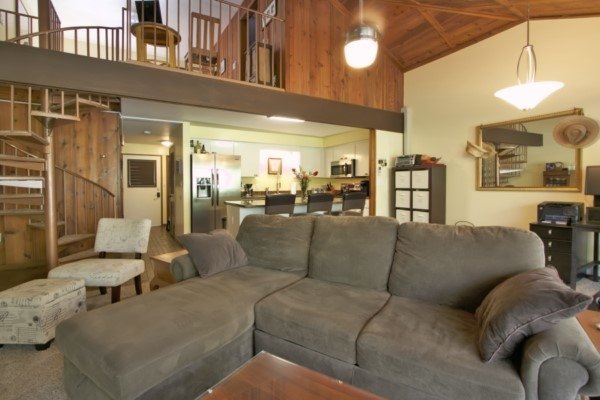 Tastefully updated 2 bedroom 2 bath unit at Koa Resort, across the street from the beach. One of the few buildings that features sprawling grounds, a large pool and spa, tennis and shuffleboard courts and a BBQ pavilion. Vaulted koa wood ceiling in the living/dining area that opens to large deck surrounded by greenery. The kitchen has been updated with stainless steel appliances (stove, refrigerator, microwave and dishwasher - July 2014). Tile floors, granite counter top and gloss white cabinets. Washer and dryer (July 2015) is located on the first floor next to a full bath with granite counter top and tile stall shower and sunny guest bedroom. The master/loft bedroom is upstairs featuring carpeting and lots of storage. The master bath has a granite counter top and a tiled tub/shower. There is an owners lock out closet and a "secret" storage space. Ceiling fans and LED lighting throughout. New carpet (April 2015) in both bedrooms and living room. New double pane windows (2015) in both bedrooms. New electric panel (2014) and a new Fujitsu split A/C system with 3 zones (2014). The unit is sold furnished with a few exclusions. 2 unassigned parking spaces and extra community storage complete this vacation rental unit in sunny Kihei.