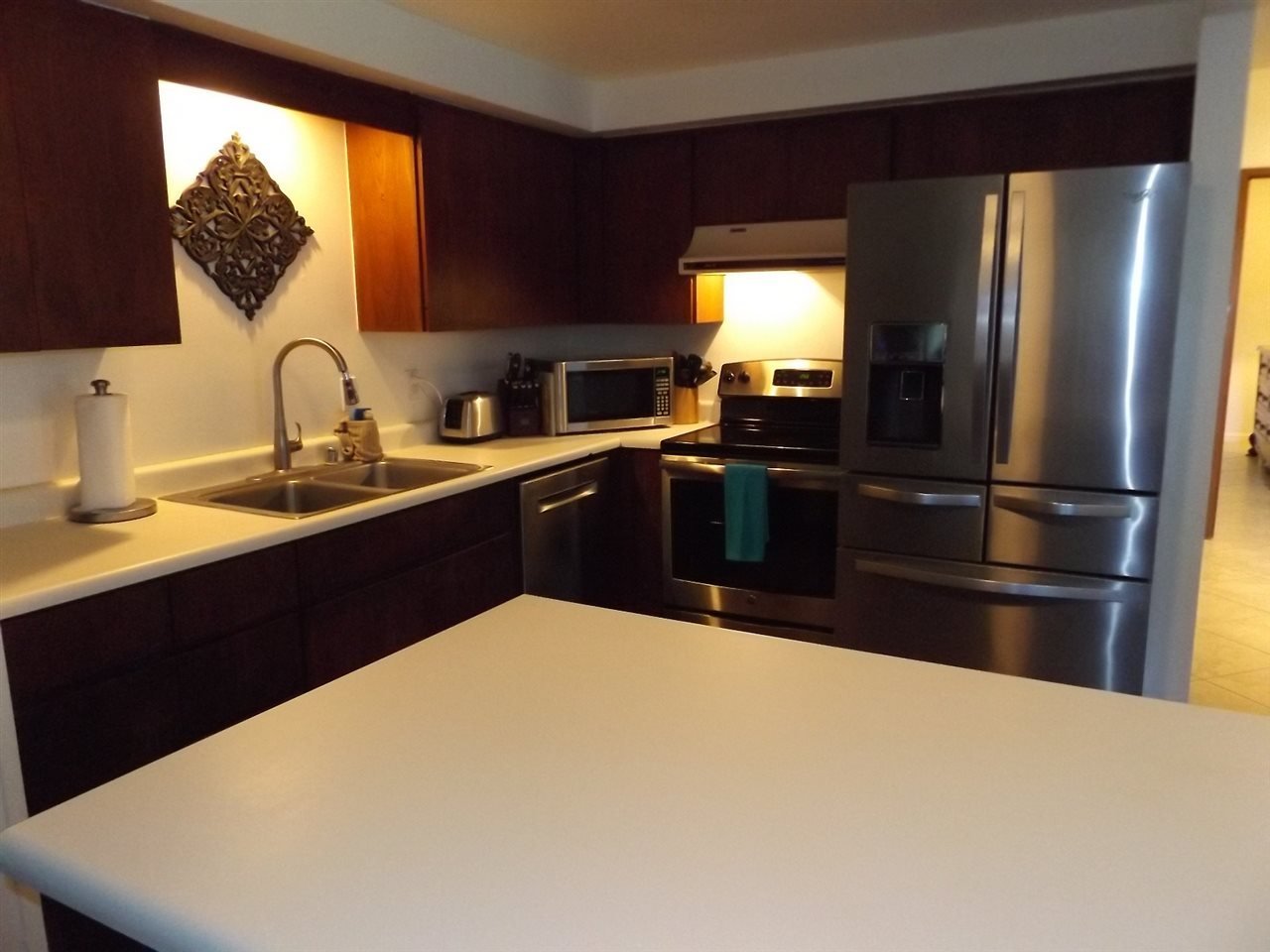 Beautiful remodeled, furnished end-unit. 5F is spacious with 1,798 sf of living area plus a large ground level lanai and another lanai adjoining the loft upstairs. New Stainless steel appliances (2015). 5F was remodeled in 2013/2014 to include new tile floors in all rooms except two bathrooms and the kitchen (extra tile was purchased for completion of these additional areas and is included in the sale). Brand new Split Air-Conditioning was was board-approved and installed in each bedroom and living room in 2014. Upstairs is a loft, complete with special accordion door for privacy, making the loft a nice office or bedroom. Upstairs is a large spare bedroom with attached storage. Koa Resort is low-rise and low-density with many wonderful mature plantings on the 5.63-acre grounds. Enjoy the large pool, spa and walking across the street for the beach and sunsets.