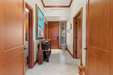 Welcome to the highly desired luxury oceanfront community of Kolea in picturesque Waikoloa Beach Resort. Kolea Kai 14H offers you stunning ocean and landscape views of the remarkable Anaeho’omalu Bay. The unique architecture and attention to detail is evident from the patterned tile roof, lush tropical landscape, and meticulously designed exterior. Upon entering the single level condo by stair or elevator, you’ll be greeted with thoughtful design and elegant furnishings throughout. Owners and guests love the spacious open floor plan, ocean and mountain views through the large pocket doors which invite natural light and gentle breezes. Design elements of this unit include: vaulted ceilings, large travertine tile, engineered Koa flooring in bedroom suites, African Mahogany cabinetry with accenting crown molding and baseboards. The lanai has built-in cabinets, Viking Grill, and U-line mini fridge, making it the perfect space for hosting and watching sunsets. The owners and vacation rental guests have thoroughly enjoyed the luxury ambiance of 14H and the incredible amenities which include: private beach club with infinity edge pool, lava spa, exercise room, sand bottom, keiki pool, direct beach access and two guest hales (guest house) for extra overflow when visitors arrive.