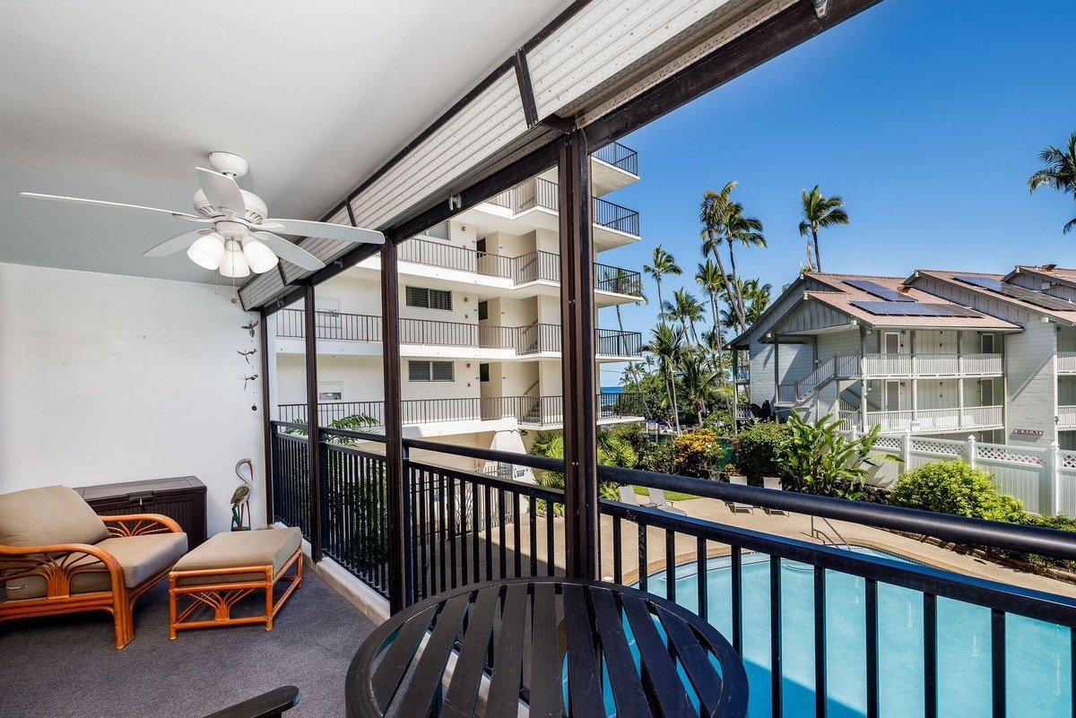 This is a STVR certified, incredibly spacious one bedroom, two bathroom condo sold fully furnished. There are tile floors throughout the living spaces and large glass doors lead you to an inviting lanai (patio) space to enjoy the Hawaiian breezes, morning coffee, or dinner with family. Coastal storm shutters are installed on the patio for peace of mind when away from your home for long periods of time.