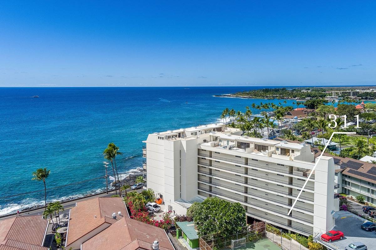 The Kona Alii is across the street from the ocean in the downtown area of Kailua-Kona, its condos as close as 30 yards from the Pacific.
