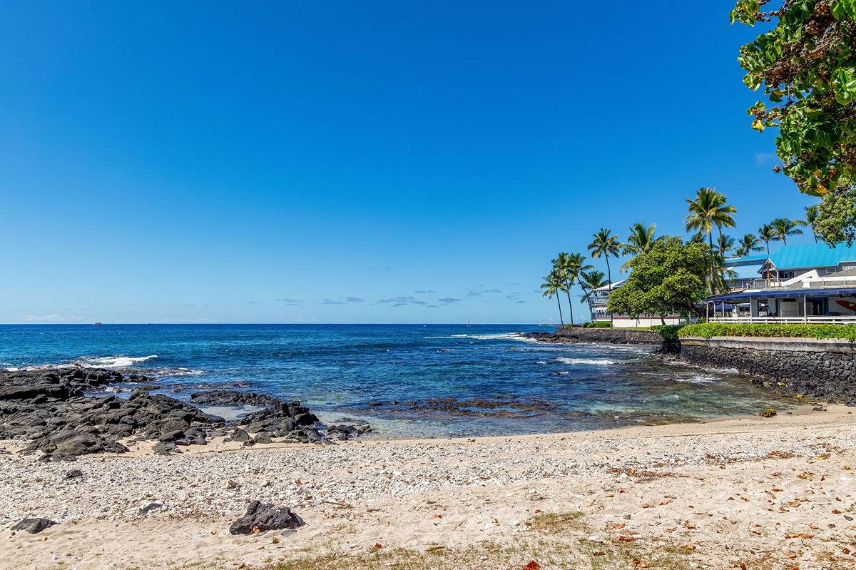 From this location you'll enjoy lovely ocean views, the ocean breeze, and the sound of the waves crashing on the shoreline. With easy walkability to Kona town restaurants, shopping, beaches, activities and more!