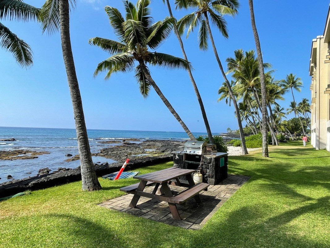 Super Clean Fee Simple Condo located in one of the most Amazing places on Earth. An immaculate, Permitted, Vacation Rental Unit, Directly across from Banyans on Ali'i Drive! With Beach, Pool and Oceanfront Barbecue. Banyans is one of the most Popular Surf Breaks on Hawaii Island in the Heart of Kailua-Kona! The Condo is offered Turn-Key Furnished for an easy move in or a continued Vacation Rental. Has good rental history. Currently blocked for easy showing. A few reservations in the future are in place and requested to be honored.Enjoy an Ocean View from your Bed and Lanai with only a 100' Walk to the Pristine Clean Pacific Ocean! Bamboo Flooring throughout this unit and Tile in the Full Bathroom. There is a Full Kitchen and a Comfortable Lanai that faces a Mature Plumeria Tree and the Ocean Waves.The Oceanfront Barbecue Areas have Awesome Kona Coastline and Sunset Views. Magic Sands Beach Park (Disappearing Sands) and Kahalu'u Beach Park is close by and the famous Pok'e Shack is across the street too. Don't miss this one!