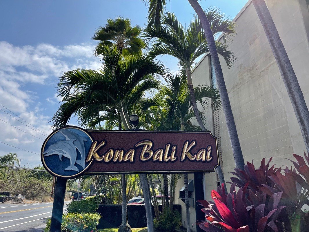 Kona Bali Kai is an oceanfront property, but made up of seven buildings. Buildings 1 & 2 (the lobby structure) are on the shoreline side of Alii Drive, while the other five buildings are just across the street on the mountain side. Building 1 holds 75 of the condos, the remaining 79 distributed in the remaining five residential structures.
