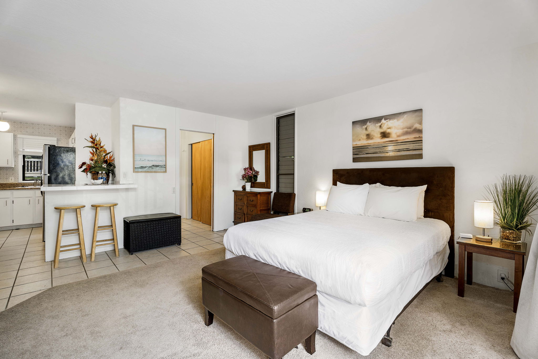 - Turnkey: This fully furnished condo ensures a seamless transition into your Hawaiian oasis. - Modern Comforts: Enjoy amenities such as a Smart TV and a window AC unit for ultimate comfort. - Recent Updates: Updated bathroom in 2024 for contemporary living. - Convenient Location: End unit right next to the crosswalk leading to the pool, lobby, offices, laundry, and Da Poke Shack. - Desirable First-Floor: Enjoy easy access with this first-floor location.