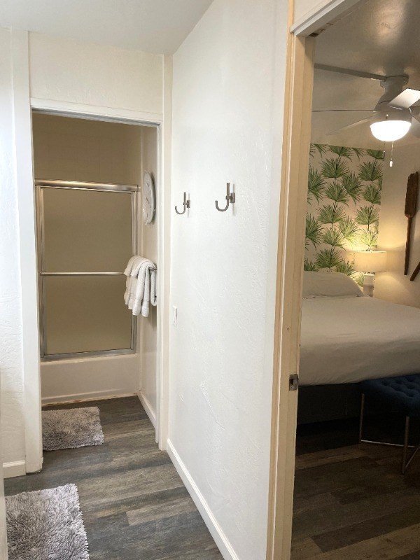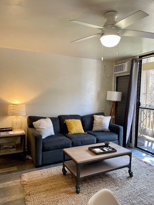 Turnkey furnished 1 bedroom, 1 bathroom Vinyl Flooring Quarts countertops in kitchen Air Conditioning wall unit in living room and standalone in bedroom