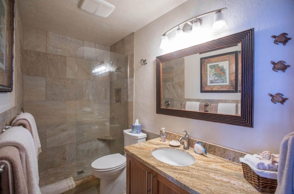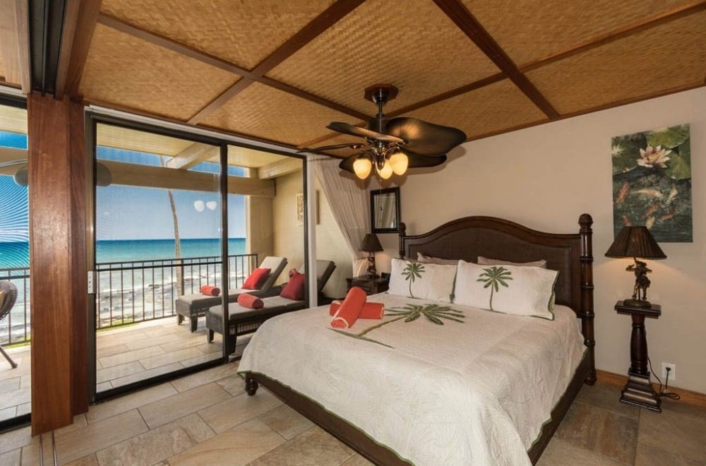 Absolute oceanfront, turnkey-furnished, air-conditioned Kona Bali Kai condo on Historic Alii Drive! Elegant yet tropical interior decor. Master bedroom opens onto a spacious and very private oceanfront lanai. You'll spend LOTS of time on the lanai sipping morning coffee, watching surfers at the nearby popular Banyans Surf Break, spotting spinning dolphins twirling in mid-air, spouting/breaching whales (in season) and, how about sipping cocktails at sunset (year round)! Oh, what a Life! Upgrades include: solid granite counter tops, mahogany wood baseboards, a split system air conditioning system. There's an onsite local "poke" eatery and rental agency. Kona Bali Kai #214 is quite near the elevator on the 2nd floor. There's a trolley stop right across the street for easy access to Kailua town where you can enjoy sight-seeing, several kinds of restaurants, shopping, volleyball at the Coconut Grove area and a swim in the ocean! (Follow the buoys on the IRONMAN swim path)!