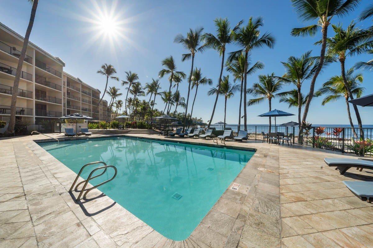 The condos are one to three bedrooms with interiors of 919 to 2,289 Sq Ft and one or two lanais of exterior space. The front desk is in a covered, open-air lobby out front on th... Read more