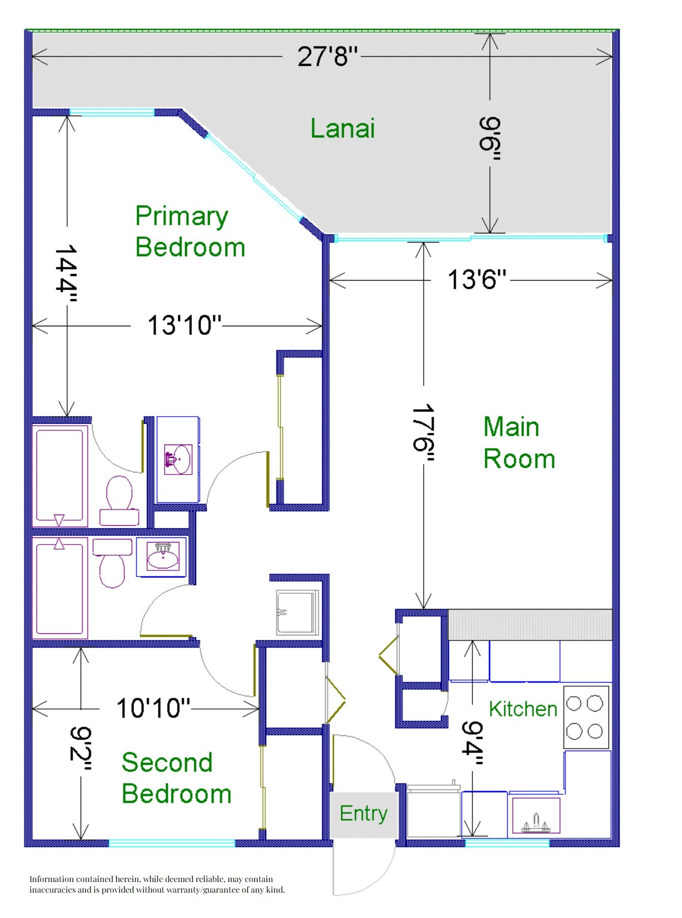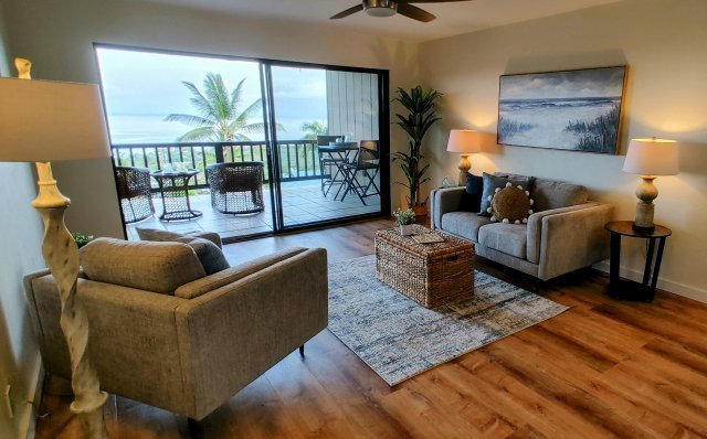 Spacious main room has full-length sliding doors leading to the large lanai.