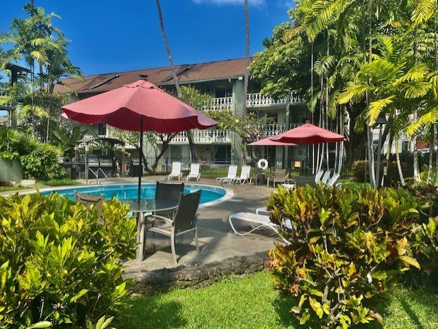 Leasehold Property. This cozy, well decorated, and upgraded studio is located at the Kona Islander Inn located in Kailua town. The unit is well equipped with microwave, small fridge, linens, including beach towels and beach chairs. Lanai over looks the garden and pool area where there is also a jacuzzi and bbq grills. This property is appealing to travelers who want to be next to the village with shops, restaurants, markets, and everything the village has to offer. A popular vacations rental that is ready to rent!.