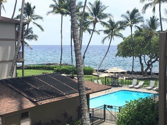 One of the better locations in building B at Kona Isle. End unit closest to ocean with very nice views. Second floor location allows for better views and good airflow. This is a priced to sell... As-Is, furnished unit with lots of potential. Mostly original condition with some upgrades. Unobstructed ocean views from lanai and part of the living area. Wonderful tropical landscaping and private sandy beach and BBQ. Solar heated ocean view pool, plenty of Palm trees and lush green lawns. Very good vacation rental or second home.