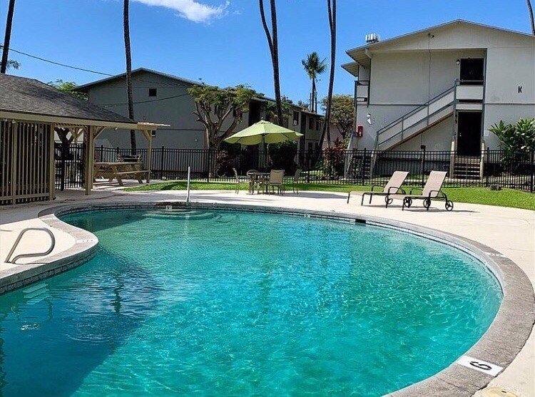 Kona Kai is right in the middle of Kailua-Kona town, its location 1/3 mile from the ocean. This is a small community of its own, made up of twelve, wooden two-story buildings. The one and two bedroom condos have interiors spanning 411 to 624 Sq Ft with one covered lanai exterior.
