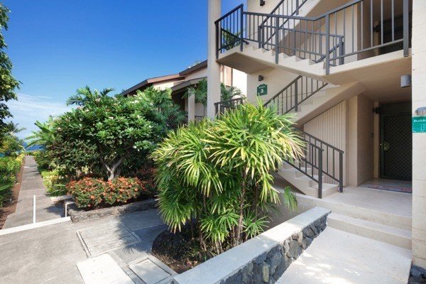 The Kona Makai is an oceanfront community, the nearest condos located at the very edge of the coastline, only 20 yards from the Pacific. The complex is gated, but only at night to add further security and privacy during those hours.
