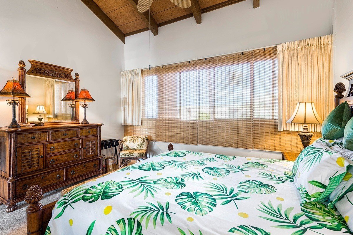 This is a leasehold property. Breathtaking ocean, mountain, and pool views from this popular top floor vacation rental in Kona Makai. This unit is located in building #6, which is closest to the ocean and in high demand. It is an updated turn key popular vacation rental unit. It's move-in ready as your new Kailua-Kona home, or for you to continue marketing it as a vacation rental. With its BONUS LOFT SPACE, this unit is comfortable enough for two couples with children.This upgraded unit includes:* Third floor vaulted ceilings * Updated custom cabinetry & granite counter tops in Kitchen and Bathroom * New air condition units * New hot water heater * New TV in living areaComplex features:* PV Solar system * Ocean front pool and spa together with gym, pavilion & BBQ facilities * Two tennis courts. * Gated entry at night and weekends * Impeccable landscaped groundsThe Kona Makai complex has long term owners and a loyal following among vacation renters. Complex amenities include a pool-side BBQ area with Weber gas grills, large custom & gated pool area, tennis courts, and lush tropical gardens. All of this with an oceanfront setting; you'll never miss a stunning Kona sunset or get tired of the never ending ocean views.
