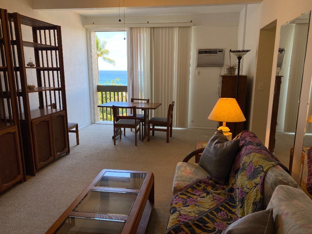 Nice ocean view in this 2nd floor end unit. Fixer upper with lots of potential. Great location and proximity to down down Kona. Pets allowed with board approval.