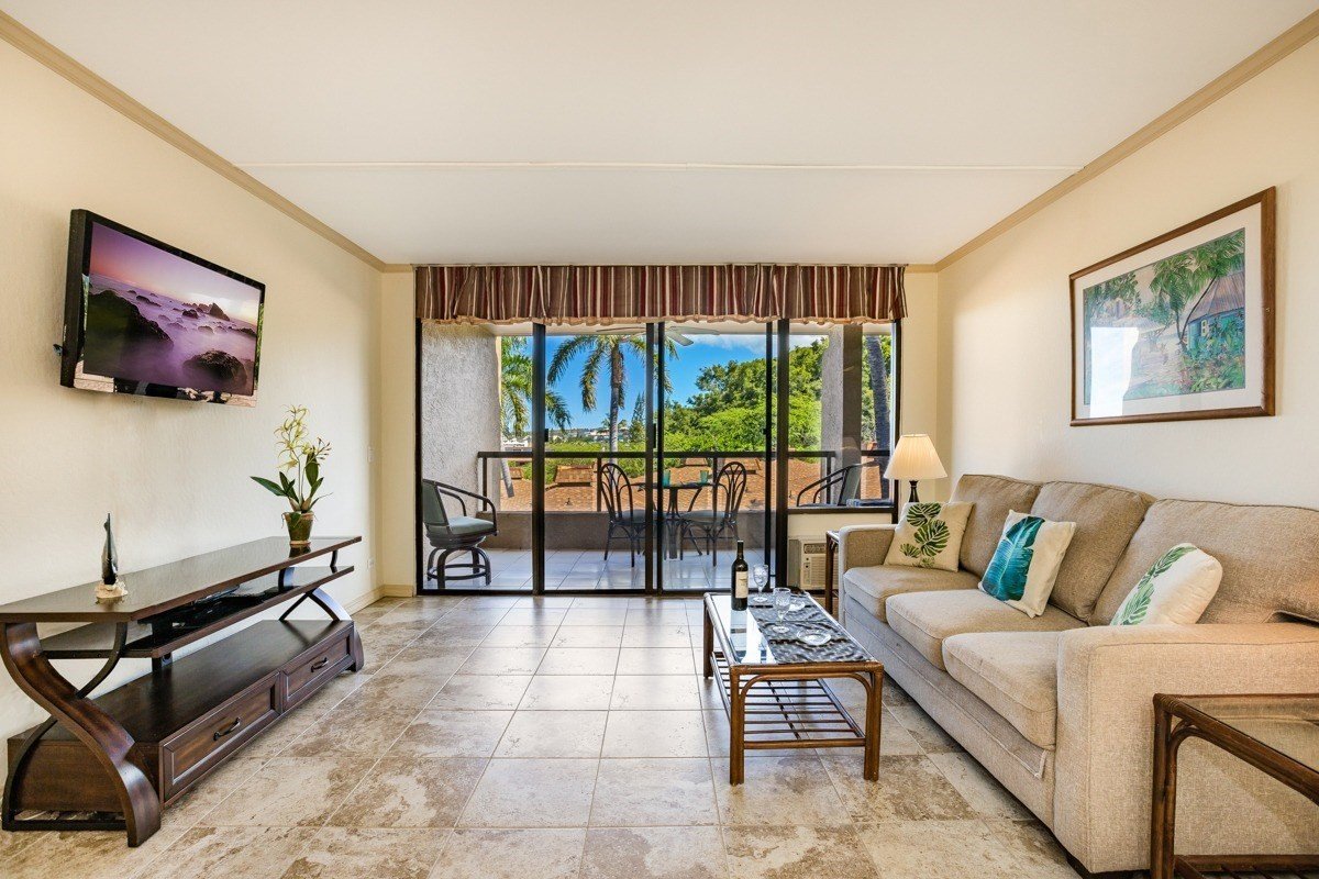 Enjoy beautiful views of the Pacific, Kailua bay, and Hualalai Volcano from this top floor, 1 bedroom 2 bath condo located in the popular "A" building. With an airy "open-living" design this condo features an updated kitchen with granite counter tops, pantry, many cabinets, drop pendant lighting and tile flooring. The large ocean view lanai encourages outdoor meals and relaxing in a lounge chair. A bedroom with plenty of space for a queen bed and sofa is connected to an updated bathroom with a tiled soaking tub/shower, granite counter tops and tiled flooring. Guests may enjoy the separate bathroom with shower. For your pleasure, the large pool, sun deck, and BBQ area are located next to building "A". The condo is easily accessed by elevator that opens near the condo's two assigned covered tandem parking spaces. The concrete buildings are well maintained and the freshly painted hallway and new carpets give you a welcoming feel. The "Kona Pacific" complex is conveniently located in Kailua town near restaurants, music entertainments, sand volleyball court, ocean sports and ocean excursions. Short term vacation rentals are allowed with no minimum day requirement. However, the next owner must obtain a short term vacation rental permit from the County of HI Planning Department.