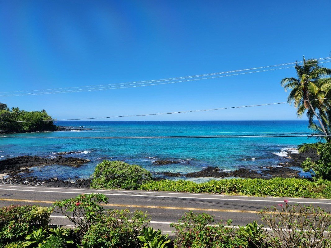 Welcome home to Kona Palms! This quiet, 2 bedroom 2 bath condominium is located directly across Alii Drive from Lyman’s Bay, with stunning top floor views of the ocean. Kona Palms is a charming complex with only 12 units in Kailua-Kona. Enjoy breakfast on the lanai and savor the sunsets in the evening. Whales are often visible during the season, and dolphins and turtles may be seen year-round. Nicely landscaped in the front, the complex has another pretty garden area in the back, which fronts the saltwater pool, and the common barbeque area. This unit has 2 deeded parking stalls, and each unit has an owner’s storage locker on the ground floor covered parking level. The water heater and associated solar components were replaced in March 2021. The in-unit stacked washer and dryer are new as of November 2022. The primary bedroom has an ensuite bath with dual sinks. Both bathrooms have beautiful tile showers. Maintenance fees include water, sewer, trash, pool/grounds maintenance, and building insurance. This unit does not have a Short Term Vacation Rental permit, but the complex is zoned for short term rentals. This complex is centrally located on Alii Drive. Approximately 1 mile south is Magic Sands Beach, one of the few beaches in Kona town, and just beyond that is Kahaluu Beach for snorkeling. This condominium is close to the Keauhou shopping center, with a grocery store, pharmacy, movie theater, and many eating establishments. Slightly further south is Keauhou Bay, with many water sports activities available. Kona town itself is only a few miles north, with all of the activities that it is well known for. Come see for yourself what this hidden gem of a condominium can offer to you.