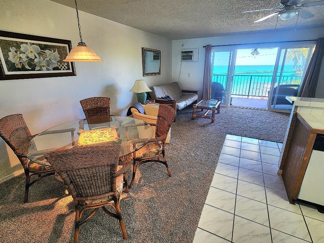 The Kona Palms is a smaller condominium just across the street from the ocean at Kamoa Point, the residences only about 35 yards from the water. There’s a nice level of privacy and quiet here, the complex surrounded by the untouched lands of Kamoa State Historical Park to the n... Read more