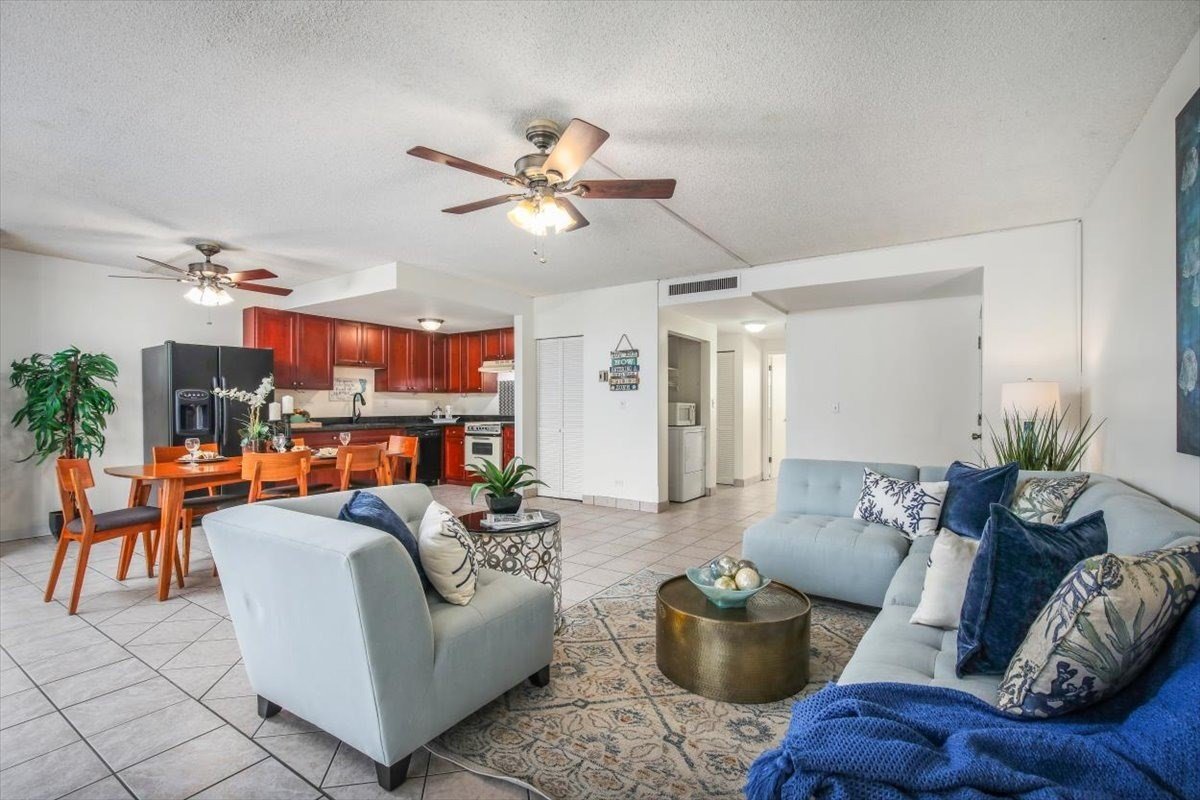LOCATION! LOCATION! LCATION.... Steps to the famous Hulihee Place and to watch the dolphins play in Kailua Bay. Refreshed unit At Kona Plaza. Kitchen was remodeled a little over 5 years ago. Fresh interior paint. The centrally located 2 bedroom 2 bathroom condo unit and zoned for vacation rentals. Underground parking and secure elevator. Pets are allowed with board approval. Unit is on the ground floor with a large lanai. Good storage. Walk to everything. Easy access. This unit is NOT currently a STVR but is zoned resort if buyers so choose to make a vacation rental. Furniture is available outside of escrow with exception of dining table and chairs. And the beds are staging beds not real beds.