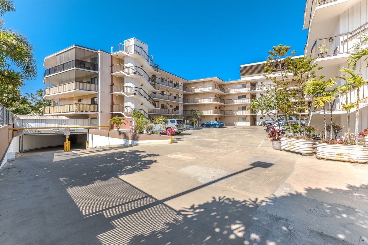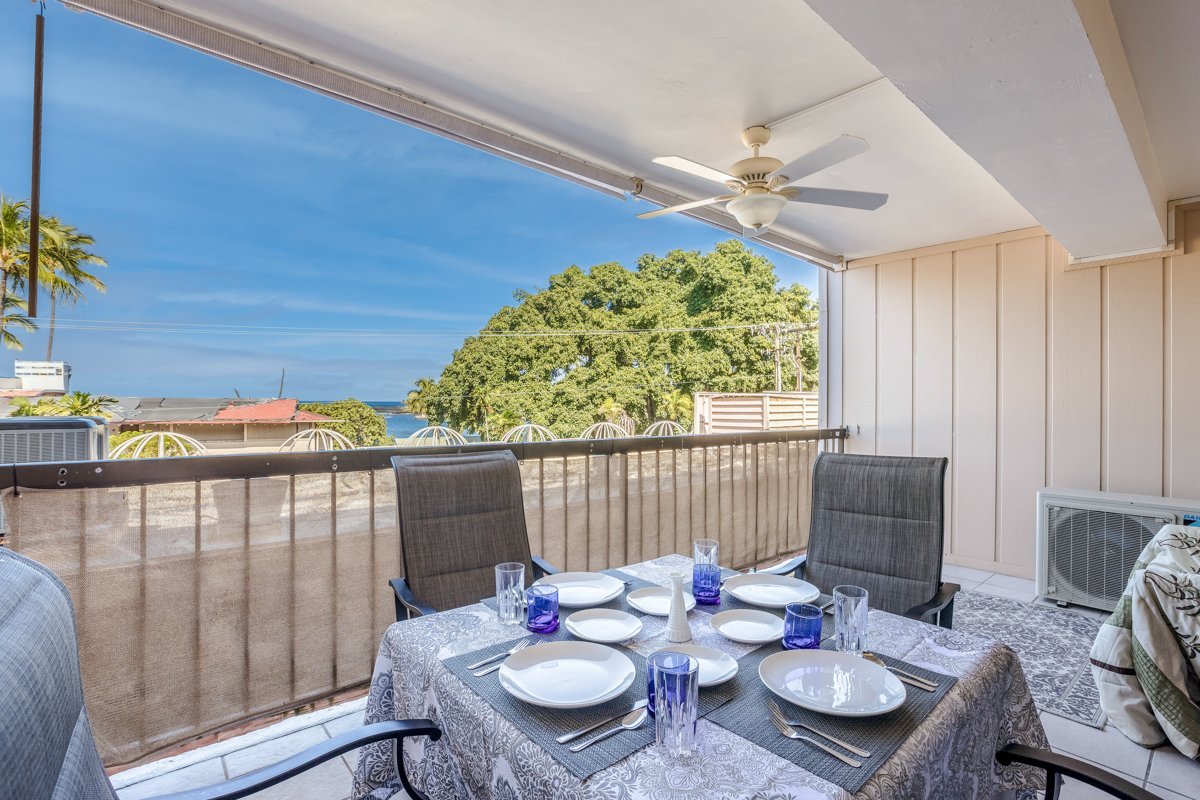 Prime location! Kona Plaza Condominium Complex - located in the heart of Kailua Kona - just across the street from the ocean. Truly the best location to experience the historic Hawaiian town with its restaurants, jazz bar, shops, ocean-front dining, waterfront, and beaches. The second floor ocean-facing lanai provides a small ocean view and a glimpse of the Kona Bay’s ocean activities, swimming, stand-up paddling, Hawaiian outrigger canoe paddling, snorkeling, scuba diving, and the various ocean excursion boats leaving from the Kona pier. This 1 bedroom 1 bathroom condo with kitchen, living area, and washer & dryer provides all the comfort you need to experience a great Hawaiian vacation or a fun permanent residence. A split air-conditioning unit was recently installed as well as a new hot water heater. The electric panel has been upgraded. Plenty of storage space is available for your personal belongings. Underground gated parking location with unassigned parking spaces shades your car from our tropical sun. The second floor condo is easily accessed by an elevator. There is extra storage space on the second floor for your beach and water toys. Two pets are permitted with board approval. Short term vacation rentals are allowed in Kona Plaza. Although the short term vacation rental permit for this unit is not in place, it can be obtained from the County of Hawaii Planning Department. For your enjoyment, Kona Plaza provides a swimming pool on the ground level, two gathering places with city, ocean and mountain views (3rd and 4th level) to sit and relax. A BBQ is available for conveniently grilling your dinner on both levels.