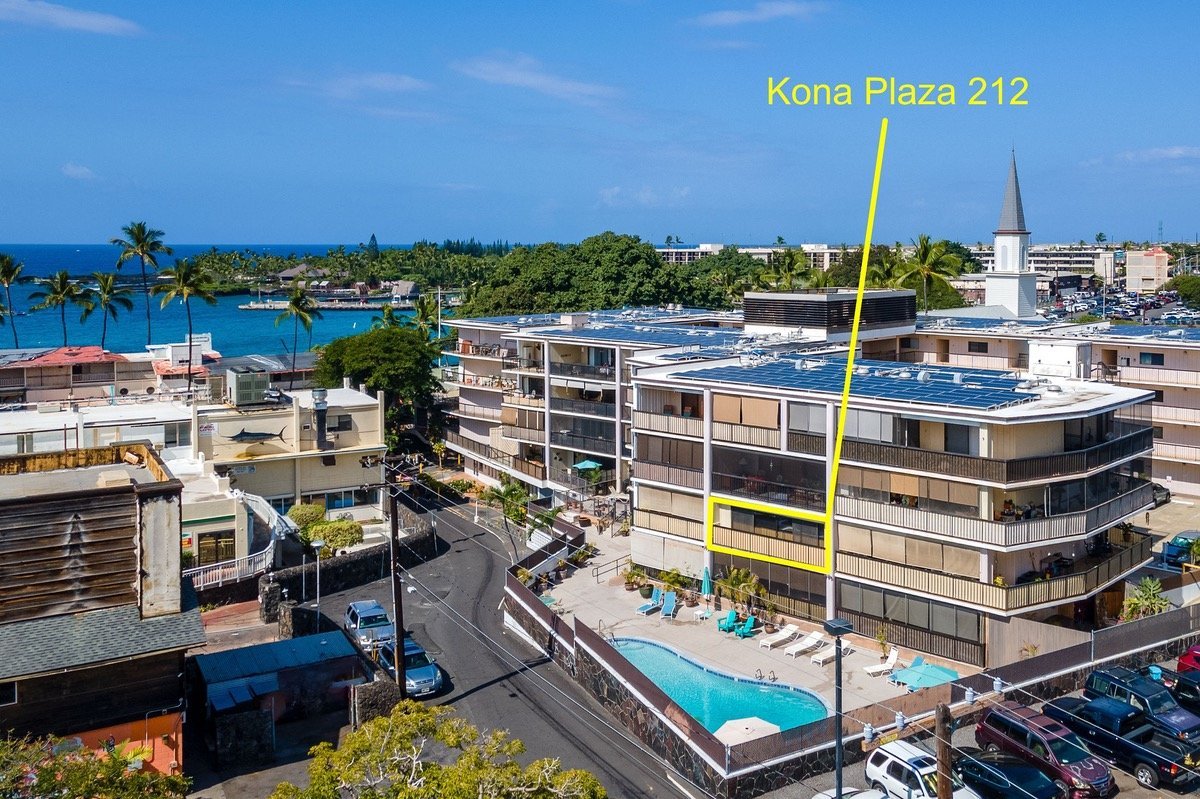 Kona Plaza is in the middle of historic Kailua-Kona town, the west end of the building just 70 yards from the ocean itself. Those living on the northern side of the condominium look across the way at the local landmark of Mokuaikaua Christian Church, built in 1820 and the first church in all of Hawaii.
