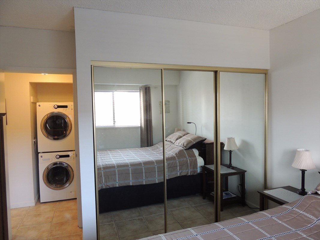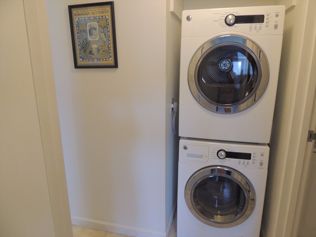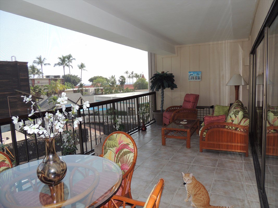 Walk anywhere in town from this Centrally located spacious two bedroom two bath condo. Tile floors through out keep this unit cool and comfortable all year long, you will love the open feel of this floor plan. Updated large kitchen with lots of storage is open to the living room, huge sliding glass doors bring in lots of light and access to a wide & long screened in lanai....a view of the pool & a peaceful respite. Both bathrooms are updated, fresh, clean, and pretty..... stacking front loading washer and dryer. Watch the 4th of July Fireworks from your lanai, the King Kamehameha Parade from the roof top area, lovely pool and barbecue area as well. Not to mention, the ocean is just steps away~ In the Hub of Kailua-Kona. This Complex ALLOWS VACATION RENTALS & PETS. The complex has air conditioning system that all the units enjoy. The electric bill is included in the maintenance fees. Fees include, water, sewer, trash, electric, cable, maintenance, 2 underground parking spots and a storage locker.