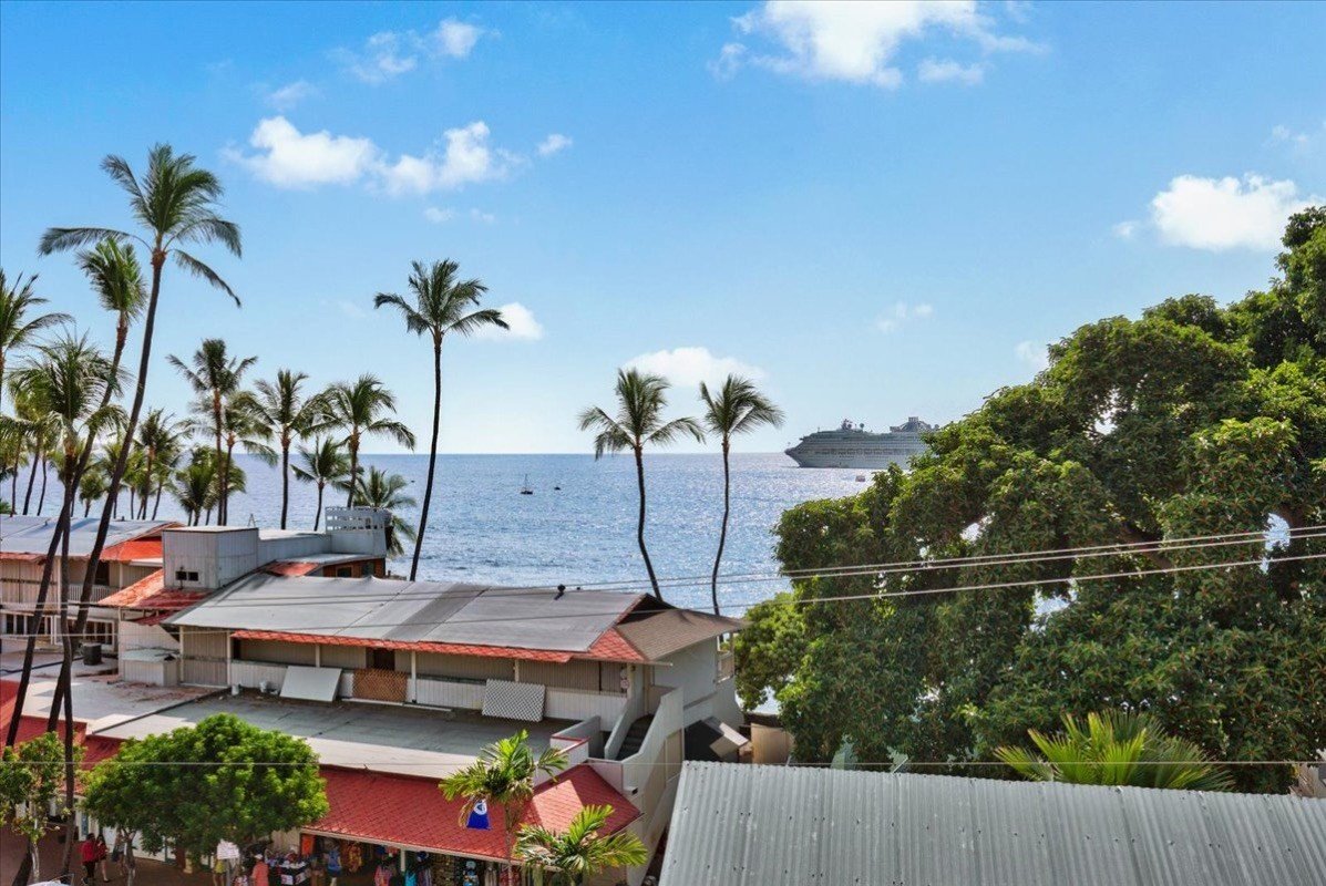 Kona Plaza Penthouse Single Level 3 bedroom 2 bath Vacation or Full-Time Living Condo. Spacious single-level 3 bedroom 2 bath condo with keyed elevator access is a very busy vacation rental. The owner will transfer future bookings to the new owner if desired, or cancel them if the owner is to be owner occupant! Kona Plaza is just a short walk off Alii Drive and the Historic Kailua Kona Village area. In minutes you can be at the beach, or dining oceanside, listening to music, or visiting historical sites. The gated underground parking and keyed elevator for access to units above ground level is an added bonus. Kona Plaza has a community ' rooftop' gathering place for residents and guests for BBQ, sunset viewing, and evening breeze enjoyment. Those who prefer a morning cup of coffee off your private lanai wander over to the keyed rooftop setting to watch as Kailua Kona wakes up to the day! The full-width double lanai affords you morning sunrise views to the east and ocean views to the west, with sunsets when the sun is headed south. Updated features include kitchen design, cabinets with granite slab countertops; full-size front load washer and dryer, both in the unit, and complex private extra storage. Upgraded LED lighting for low electricity use; a reverse osmosis unit for saving on buying bottled water ( good for you and the ocean too!!) The large pool on the ground floor makes for a great spot to dip after a day at the beach or maybe just lounge around and relax. Association fees include your privately metered electricity cost which is substantially below the usual utility costs due to the Photo Voltaic Solar power generation at Kona Plaza. Owners are billed by Association for their metered electric use, collected with dues monthly. Central A/C is included also with your dues as the complex has its own cooling system for your unit to cool. Each unit is The current $9838.00 special assessment has been prepaid by sellers.