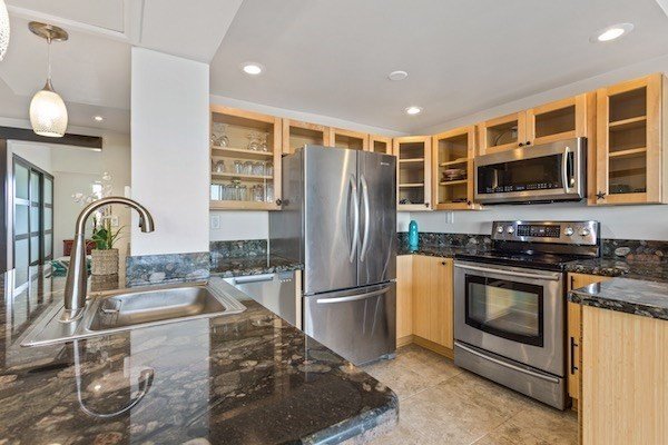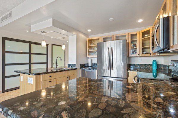Offering an open floor plan, custom shoji screen-style interior and closet doors, “tide pool” granite countertops, new stainless steel kitchen appliances, range that acts as a dual/convection oven, custom screen work, and immaculate porcelain tile throughout - you may never want to leave the comfort this elegant unit provides.